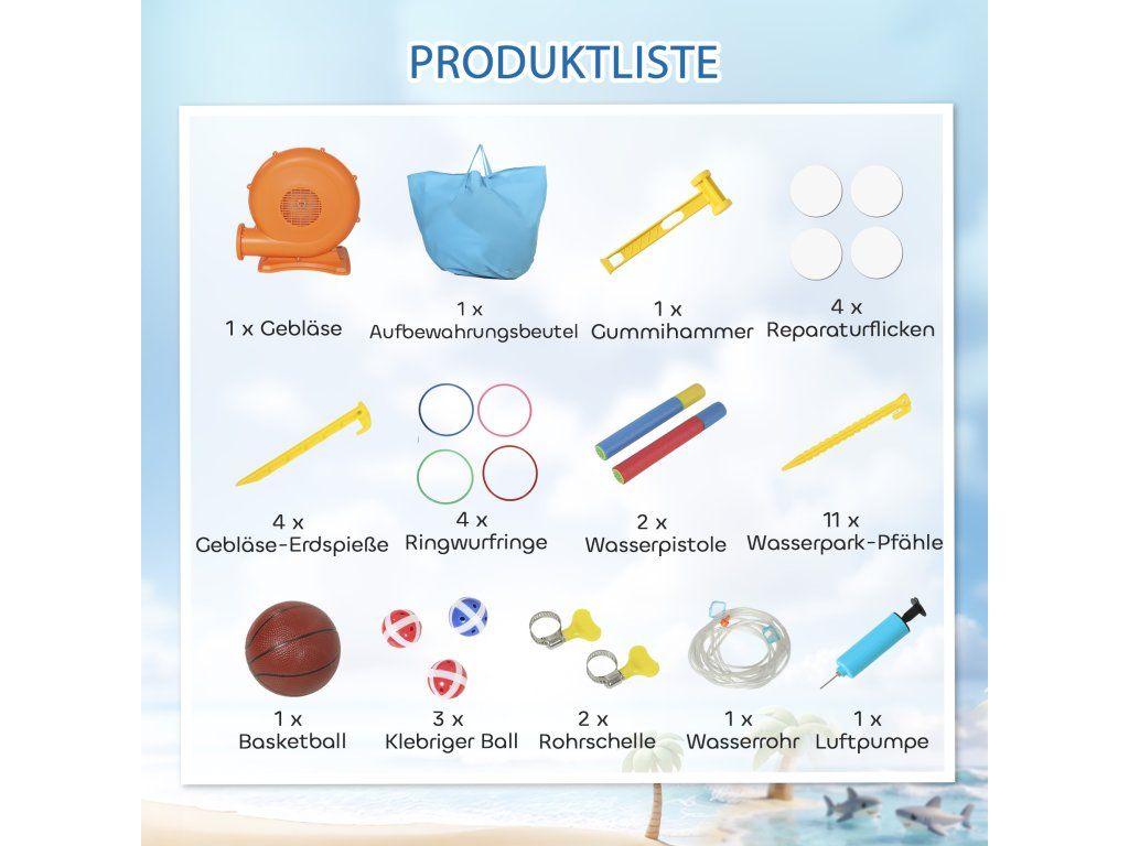 Kompletní sada příslušenství: Sada obsahuje vše, co potřebujete: vzduchový ventilátor, zemní kotvy, přepravní tašku, vodní pistole, míčky, sadu na hod kroužky a opravné záplaty. To zajišťuje dlouhotrvající zábavu a snadnou údržbu.