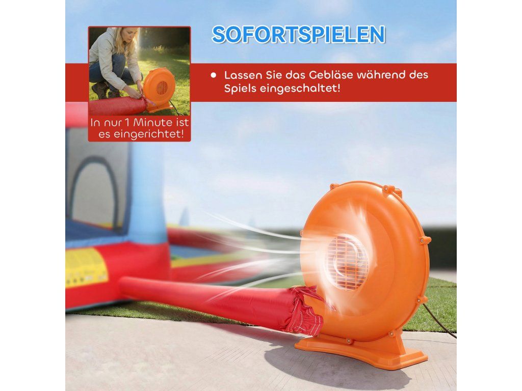 ✔ Výkonný 350W foukač se rychle nafoukne, takže hraní může začít téměř okamžitě.
