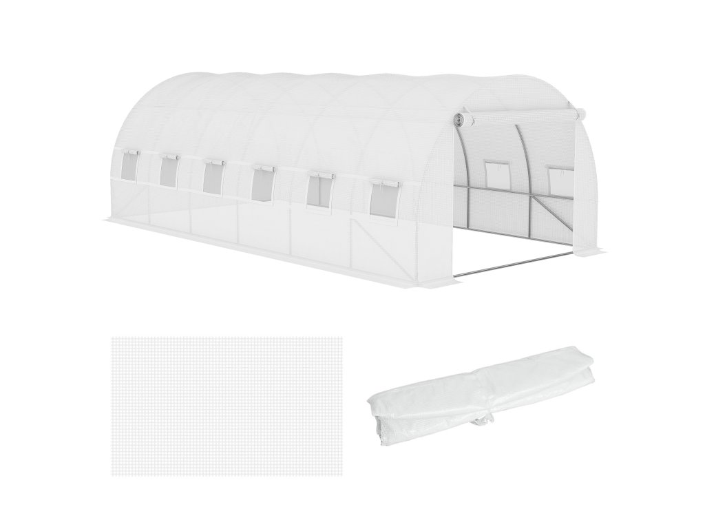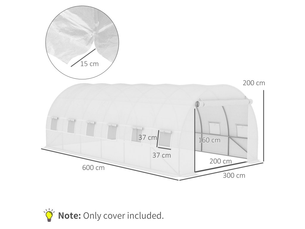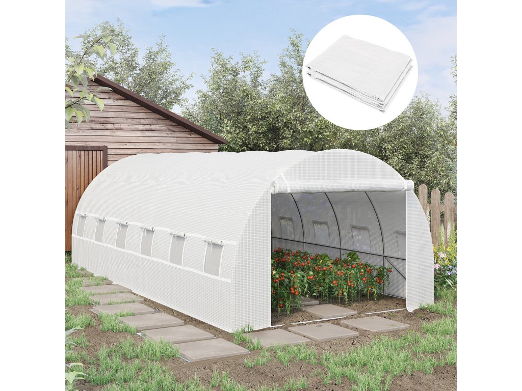 Náhradní fólie Outsunny náhradní fólie 600 x 300 x 200 cm s předními dveřmi, 12 oken odolná proti roztržení fólie na skleník, bílá