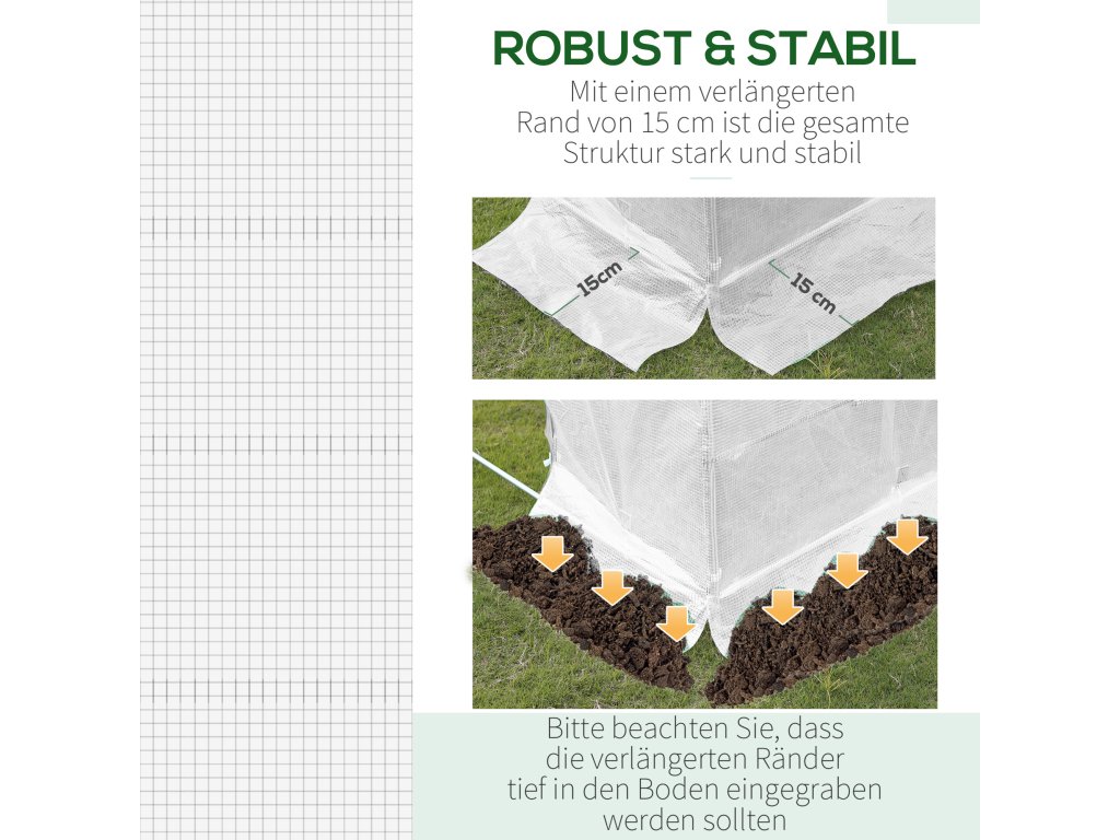 Odolný plastový kryt: Robustní skleníková fólie je prodyšná a odolná proti UV záření a také roztržení a nabízí dlouhodobou ochranu vašich rostlin před deštěm, větrem a sněhem. Snadné připevnění k rámu pomocí přiloženého pásku na suchý zip