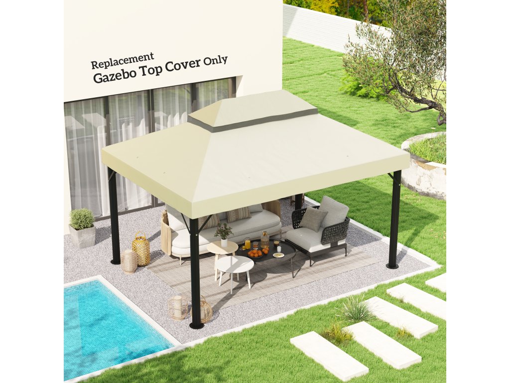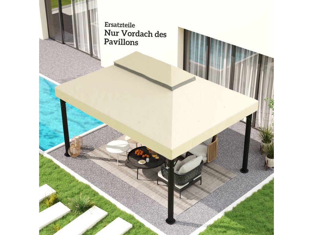 Náhradní střecha pavilonu Outsunny, 3 x 4 m, náhradní plachta s otvory pro odvod vody, polyester, ochrana proti slunci, UPF30+, krémově bílá