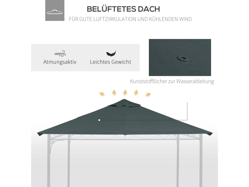 Náhradní střecha pro zahradní pavilon Outsunny, polyester, 2,98 x 2,95 m, tmavě šedá