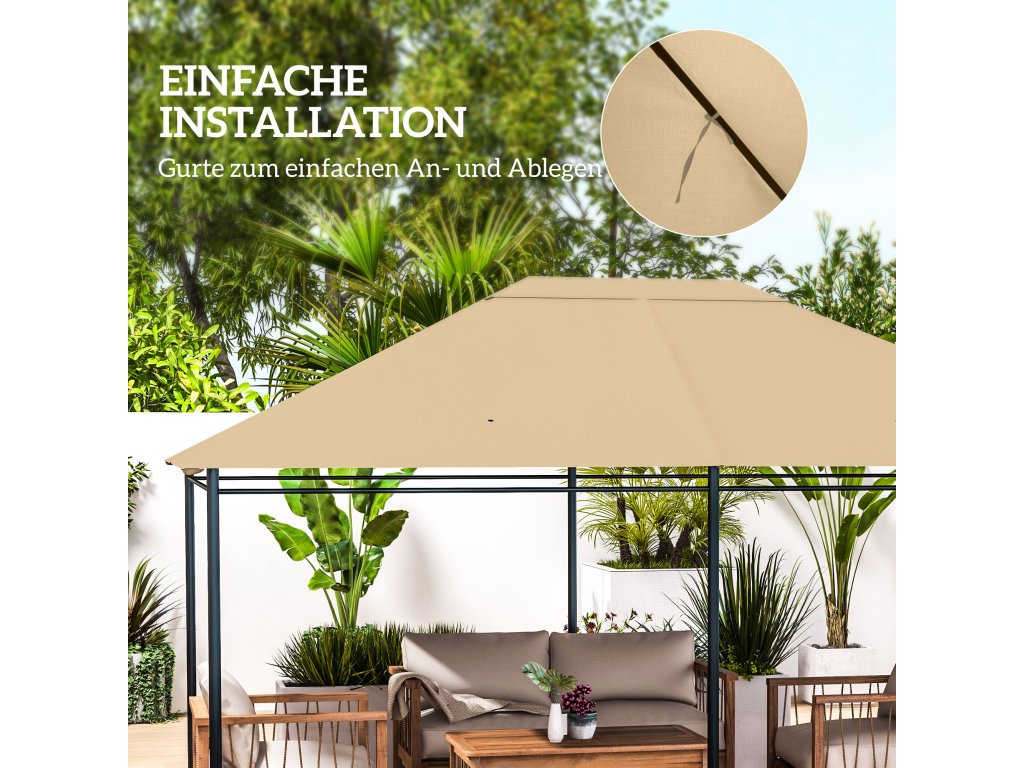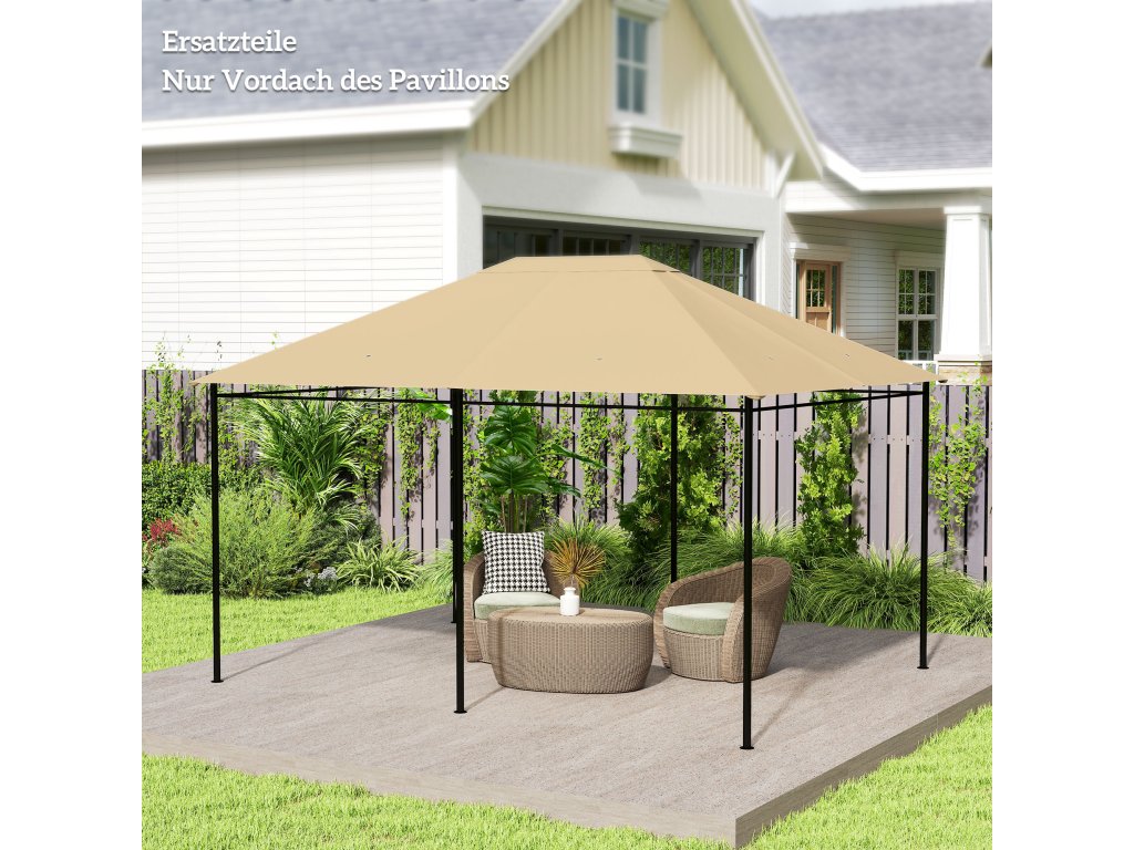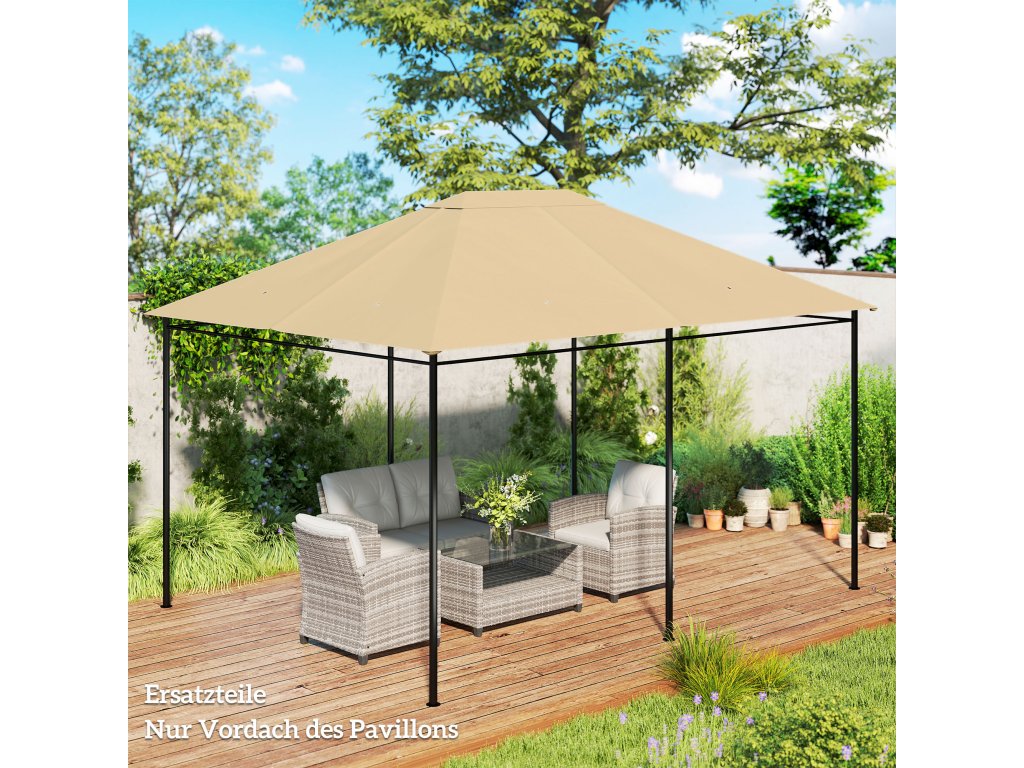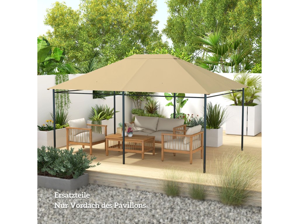 Náhradní střešní stříška altánu Outsunny, odolná proti povětrnostním vlivům, 397 x 297 cm, khaki barva
