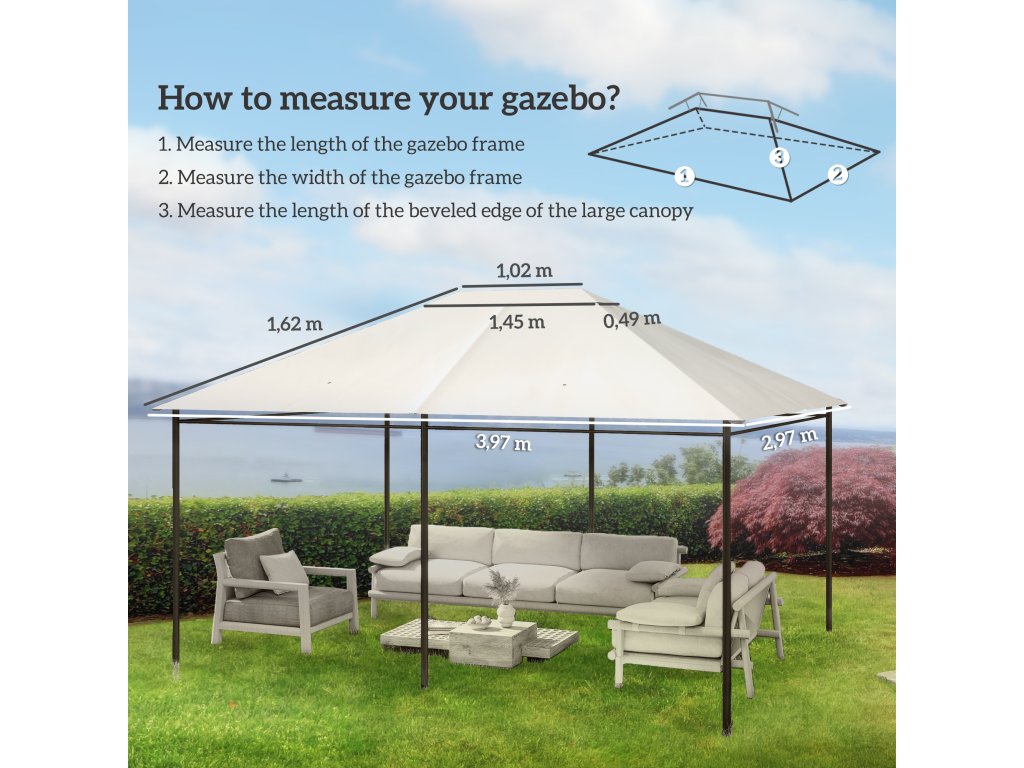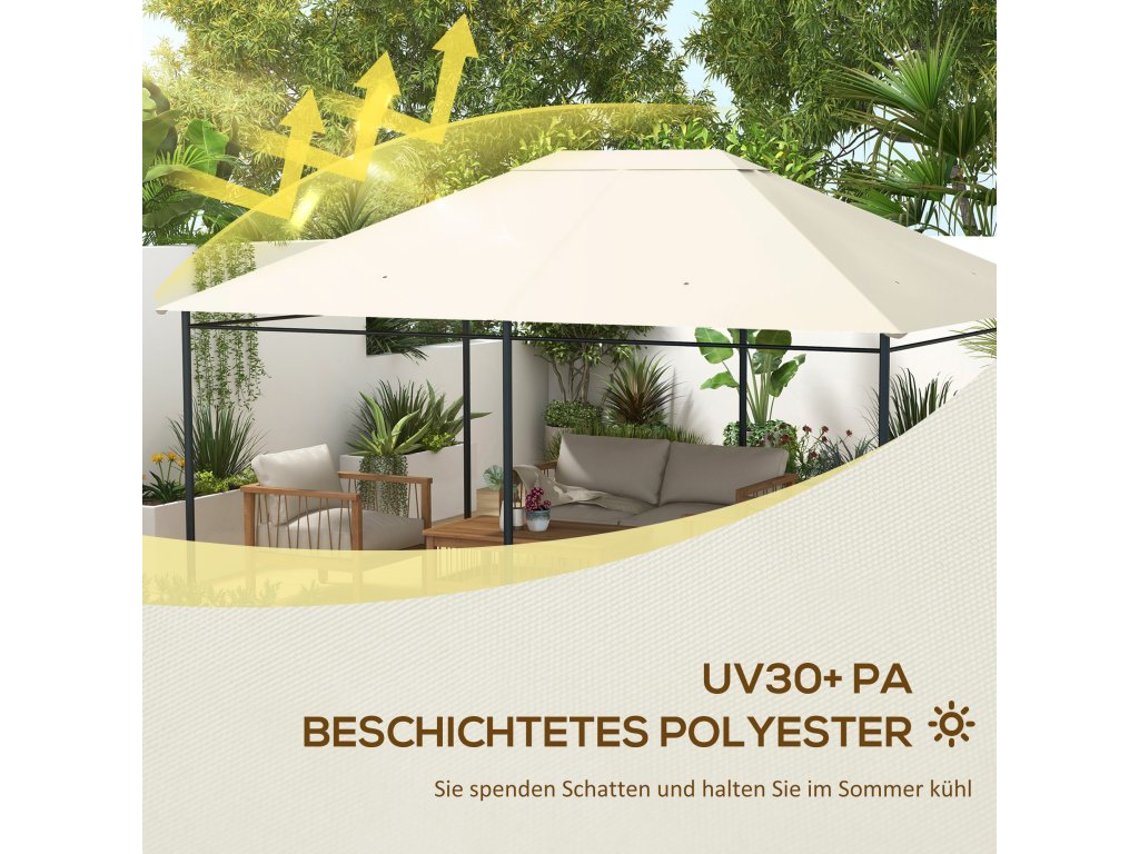 Náhradní stříška altánu Outsunny, odolná proti povětrnostním vlivům, 397 x 297 cm, krémová