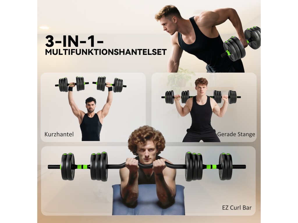 Optimalizujte si domácí trénink s multifunkční sadou činek 3 v 1. Tato sada, navržená pro maximální flexibilitu, se rychle promění v činky, rovnou činku a EZ Curl tyč – ideální pro trénink celého těla. Díky plastovým zátěžovým kotoučům plněným pískem a protiskluzovým rukojetím je ideální pro začátečníky i pokročilé uživatele. Díky úspoře místa a snadné montáži je ideální pro malé byty a domácí posilovny.