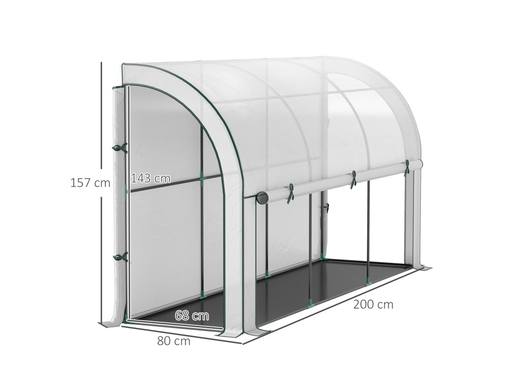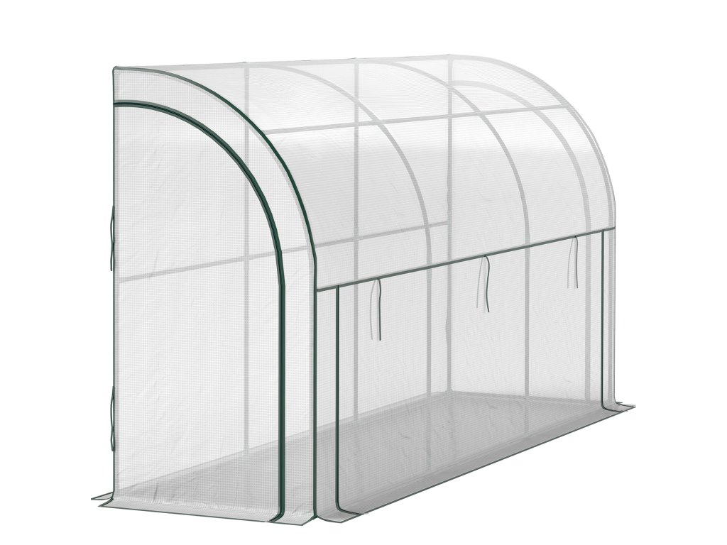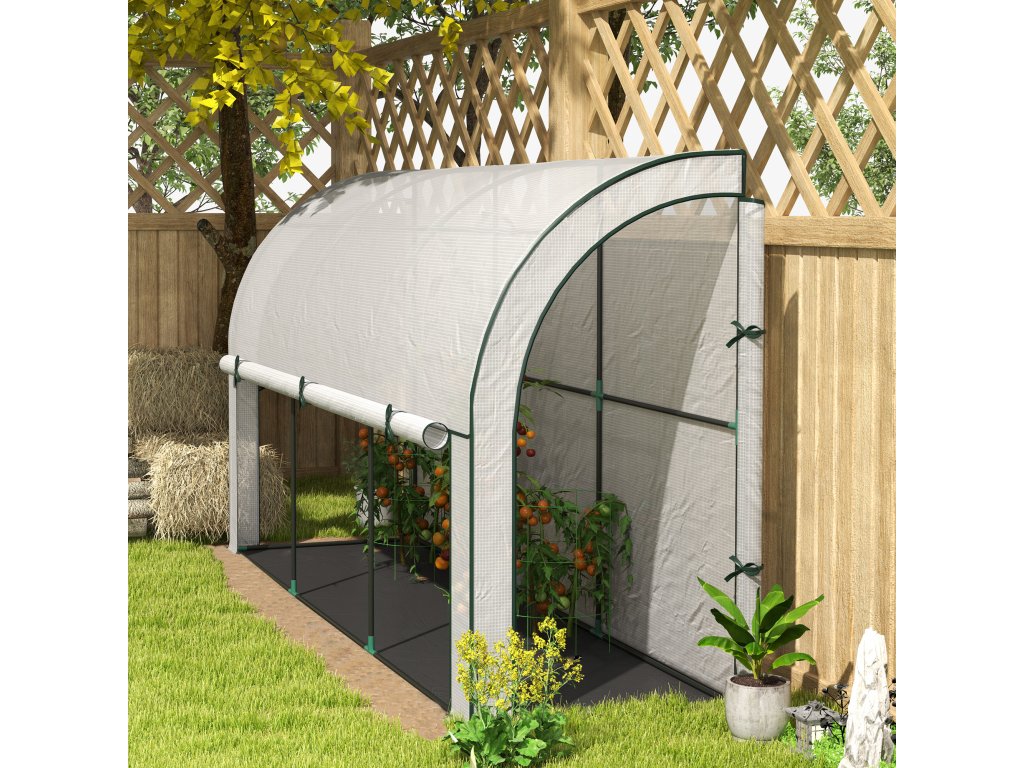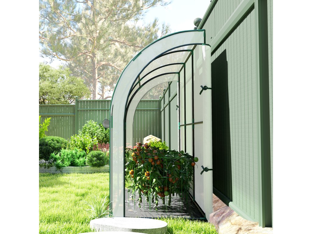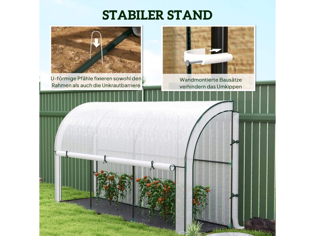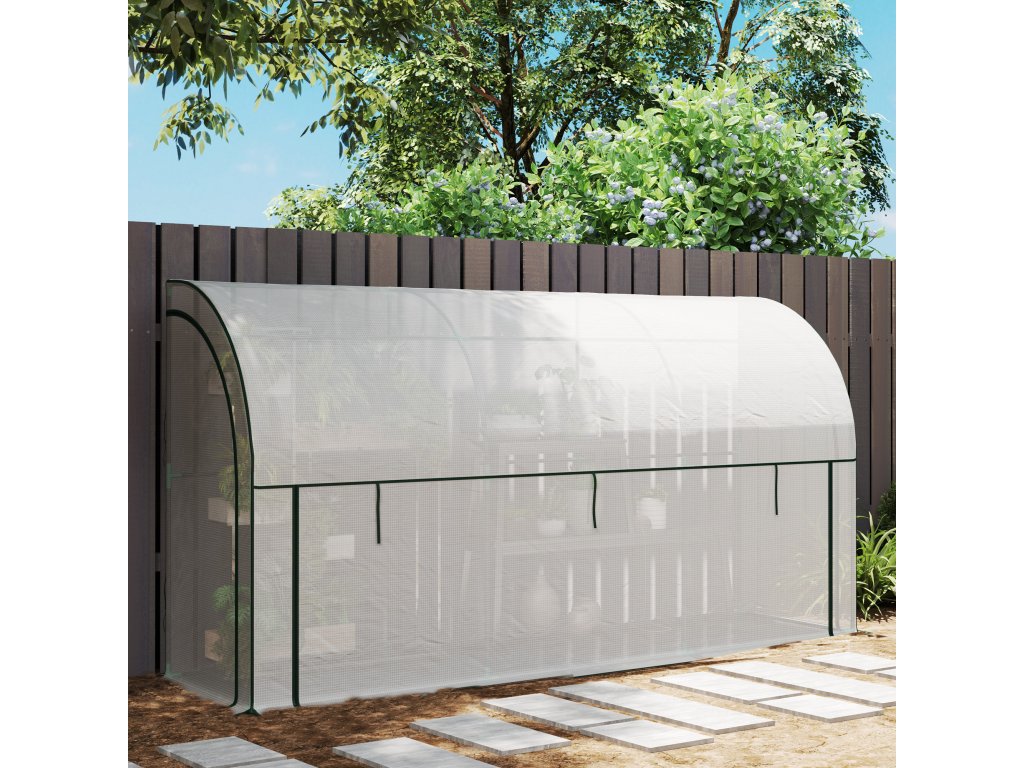 Nástěnný skleník Outsunny, přístupný domek na rostliny, plastová plachta, 300 x 80 x 157 cm, bílá barva