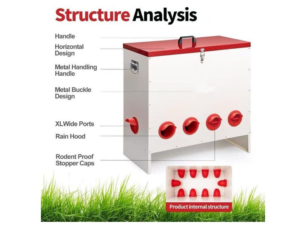 Krytý design chrání krmivo před deštěm, vlhkostí i nečistotami. Zároveň omezuje přístup škůdců, jako jsou hlodavci nebo volně žijící ptáci.
