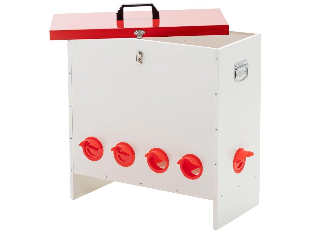 Robustní krmítko s 10 krmnými otvory je ideálním řešením pro chovatele, kteří hledají efektivní a hygienický způsob krmení slepic či jiné drůbeže. Díky uzavřené konstrukci minimalizuje plýtvání krmivem a zároveň chrání obsah před znečištěním. Spolehlivě pojme až 50 kg sypkého krmiva.