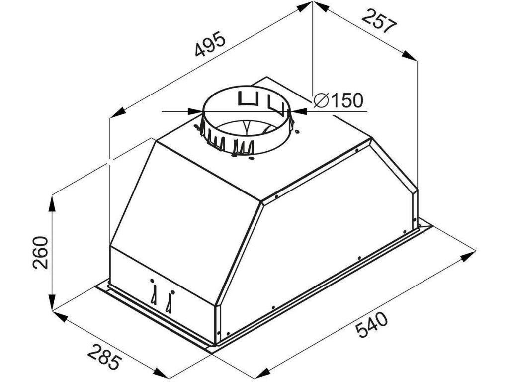 Vestavný odsavač par, barevné provedení černý kov, elektronické Soft Touch ovládání s displejem, dalkový ovládač umožňuje ovládat světlo a funkce odsávače; nastavení intenzity LED osvětlení, tato funkce umožňuje nastavit světlo odsavače par ve 3 úrovních, abyste jej přizpůsobili světlu, které je v místnosti; výkon: max. odsávání boost 640 m3/hod, max. odsávání 430 m3/hod, max. recirkulace boost 370 m3/hod, max. recirkulace 320 m3/hod, hlučnost min/max výkon odtah: 51/70 dB(A), hlučnost min/max výkon recirkulace: 63/71 dB(A), En. třída B, roční spotřeba 63,8 kWh, osvětlení 2 x LED pásek, 2 x tukový filtr; filtry z aktivního uhlíku pro režim recirkulace: 2 x FR-0563 (není součástí balení), instalace odtah a recirkulace, dodávaný v režimu recirkulace; rozměry (V x Š x H) cm: 26 x 54 x 30