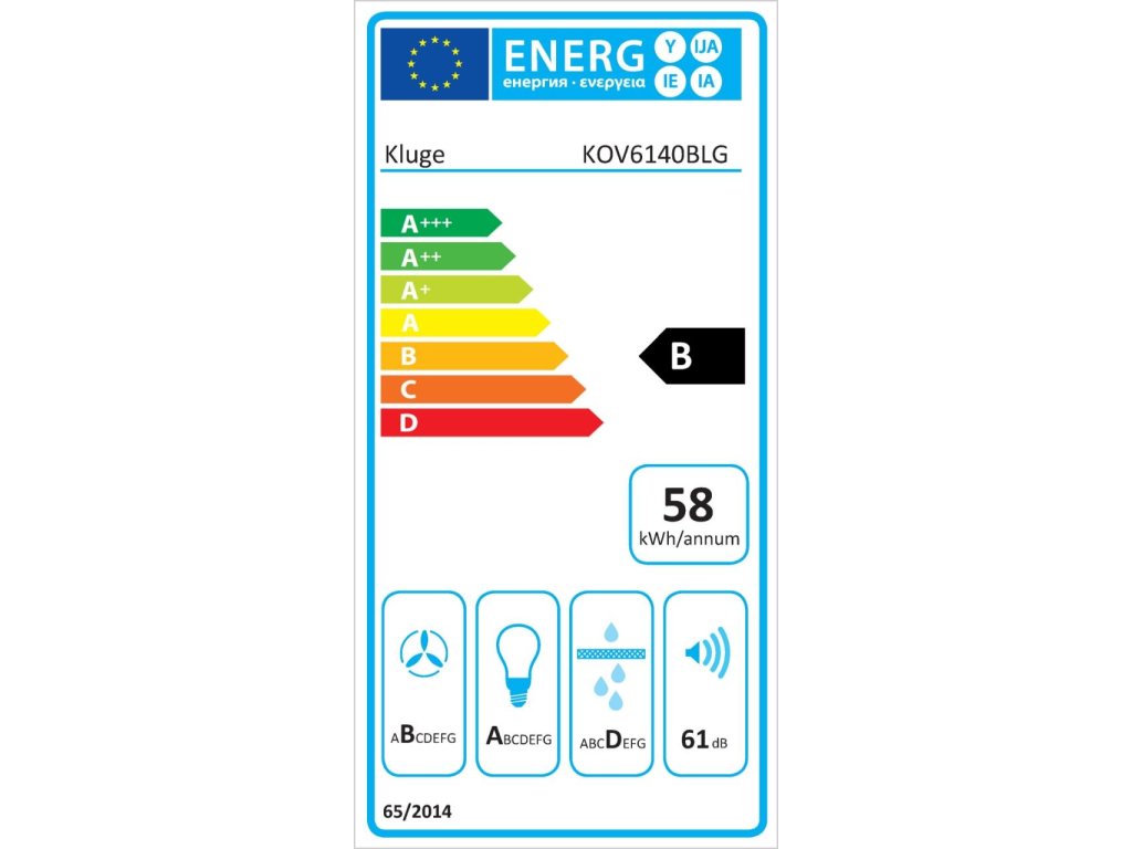 - Energetická třída B, roční spotřeba energie 58 kWh