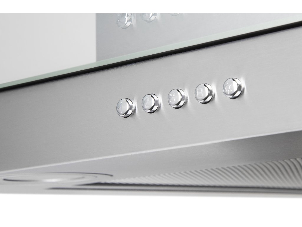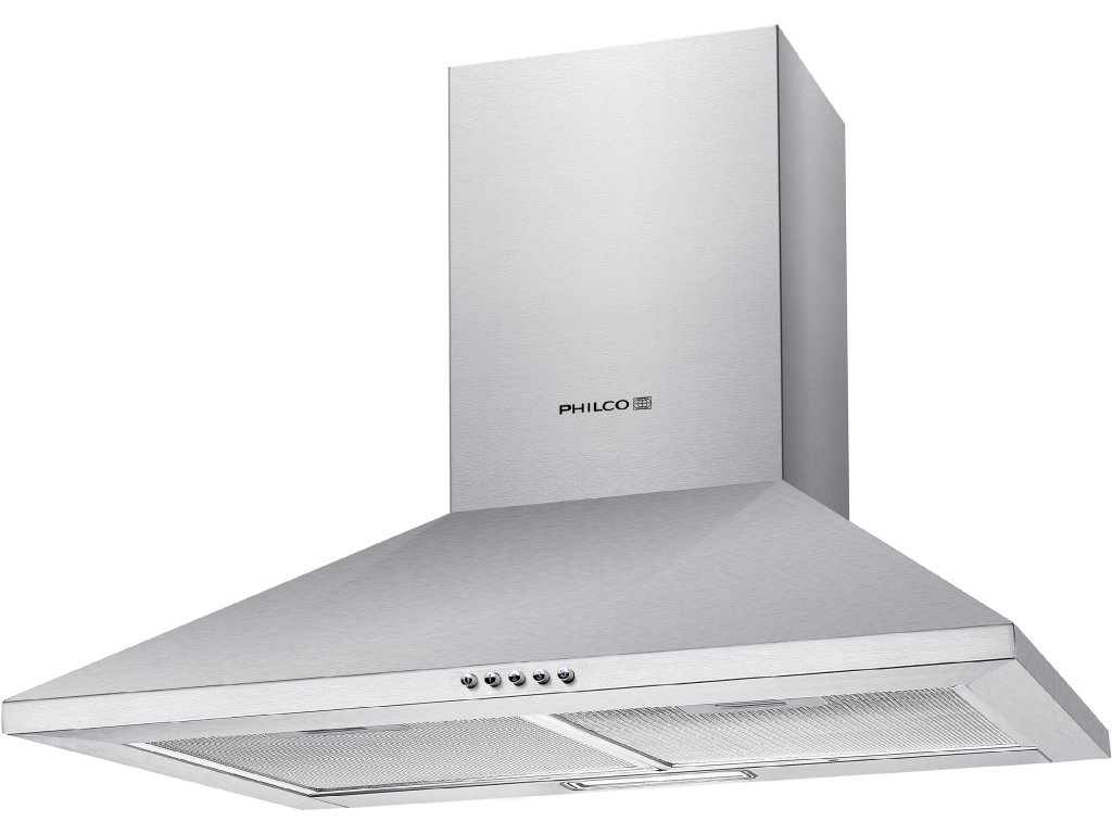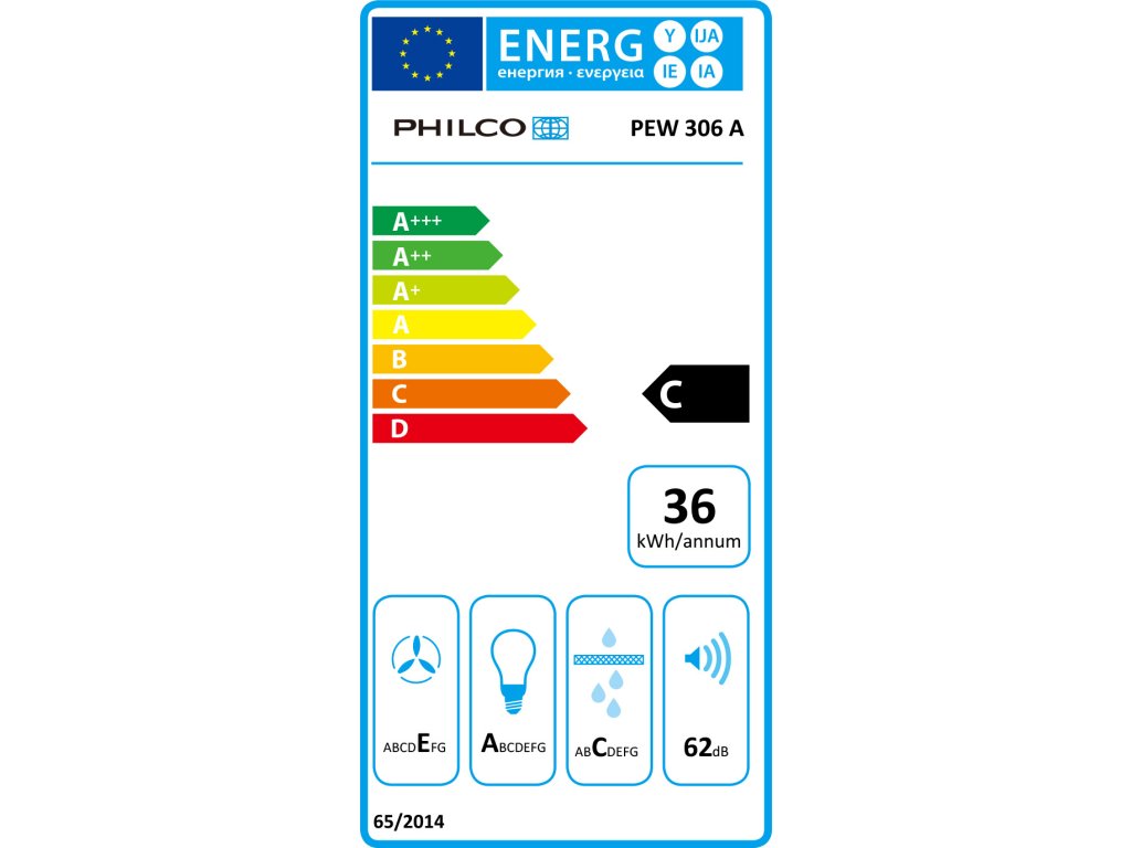 Komínový odsavač par Philco PEW 306 A, provedení nerez s tlačítkovým ovládáním a LED osvětlením, třída energetické účinnosti C.- Šířka 60 cm