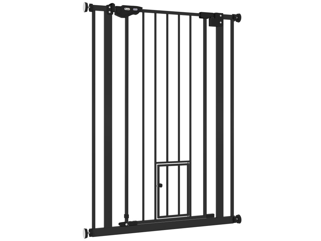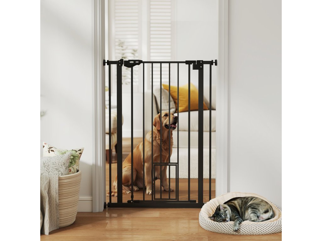 Ohradník pro psy PawHut, dvojité zamykání, samozavírací dvířka, výška 104 cm, ocel, černá barva