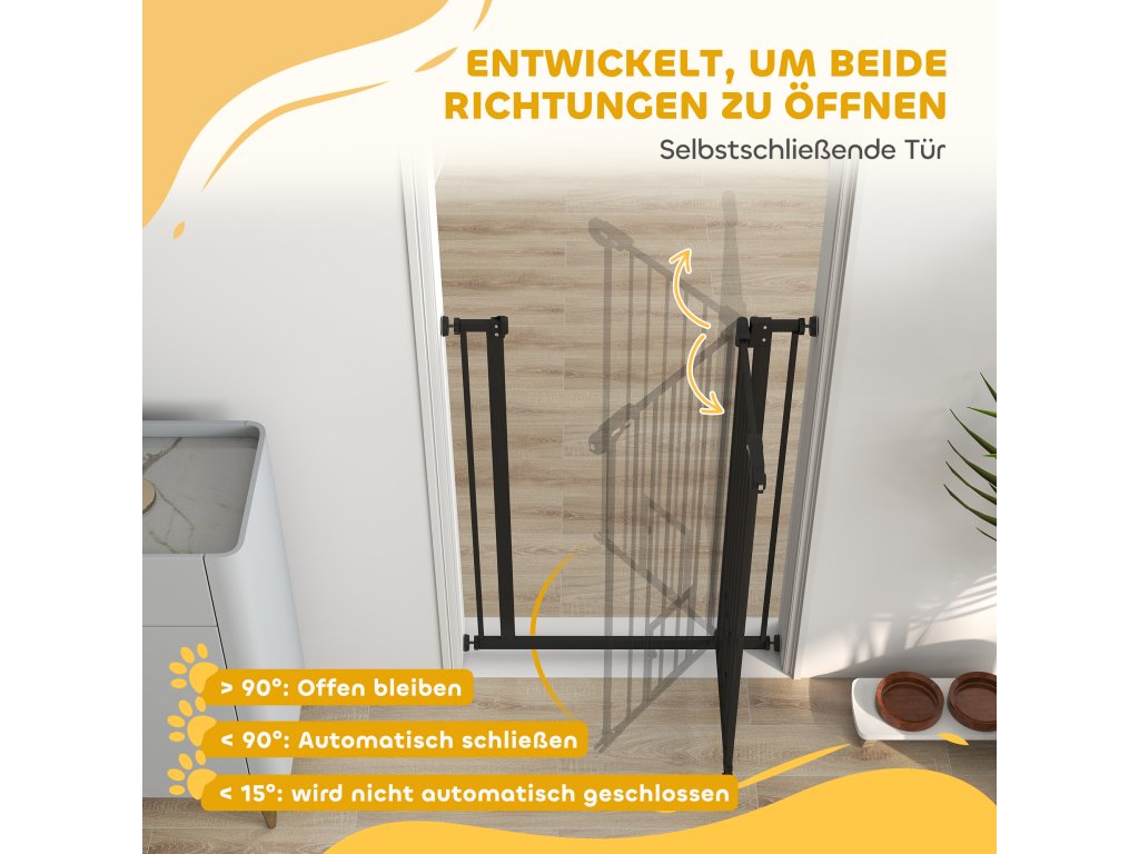 - ✔ Dvířka naší zábrany pro psy se automaticky zavřou, když je úhel otevření menší než 90°, a zůstanou otevřená, když je větší než 90°