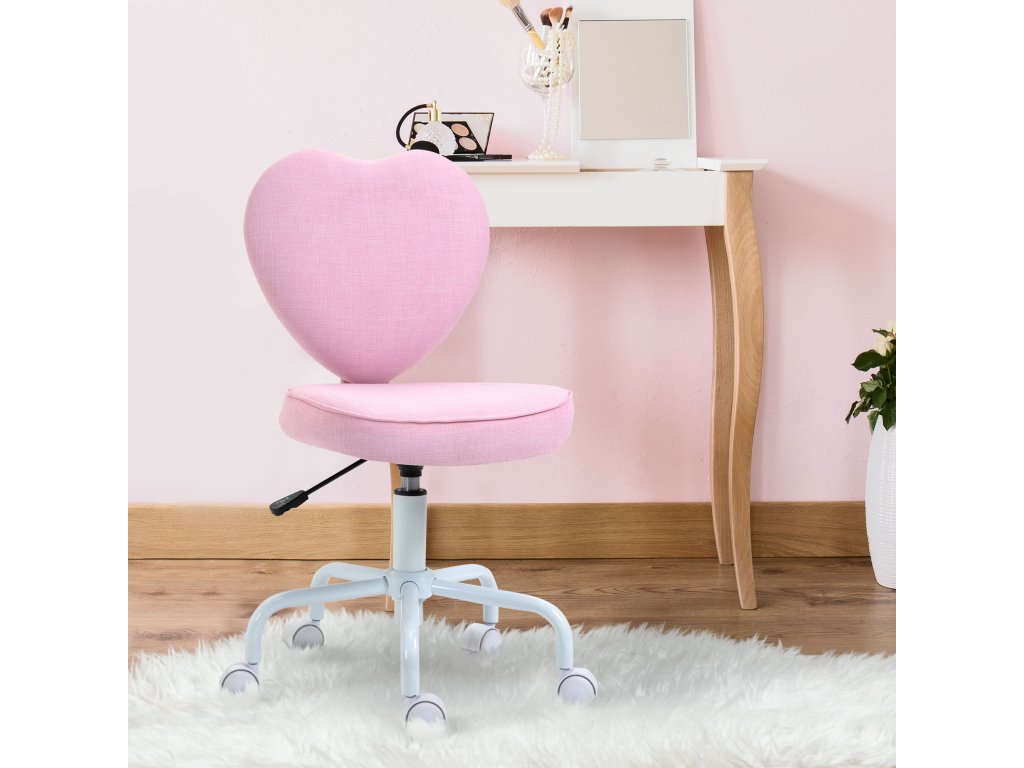Otočná židle HOMCOM, design roztomilých srdíček, výškově nastavitelná, látkový potah ve vzhledu lnu, růžová, 40 x 50 x 79-89 cm