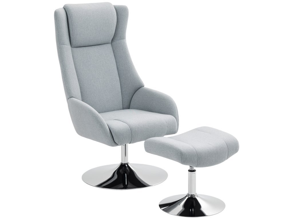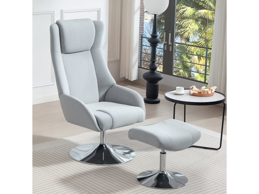 Otočné čalouněné křeslo s podnožkou, polohovací, čalouněné křeslo s područkami, do obývacího pokoje, ložnice, šedé