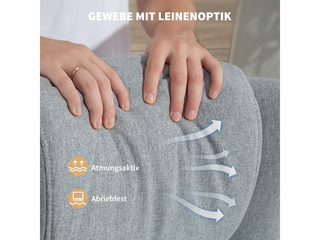 Prodyšné pohodlí: Měkká látka podobná lnu a silné pěnové polstrování vytvářejí příjemné, prodyšné polohovací křeslo, které vám umožní pohodlně relaxovat v každém ročním období. Pevná konstrukce: Díky robustní, galvanicky pokovené kovové základně nabízí TV křeslo spolehlivou oporu až do 120 kg. Ochranný kroužek na základně zabraňuje poškrábání podlahy a poskytuje dodatečnou stabilitu.