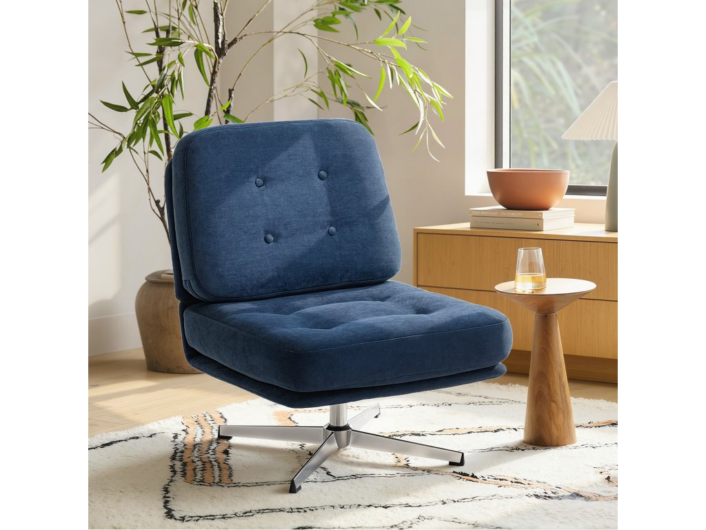 Otočné křeslo HOMCOM, čalouněné čtecí křeslo s žinylkou, široký sedák, péřový polštář a kovové nohy, tmavě modré