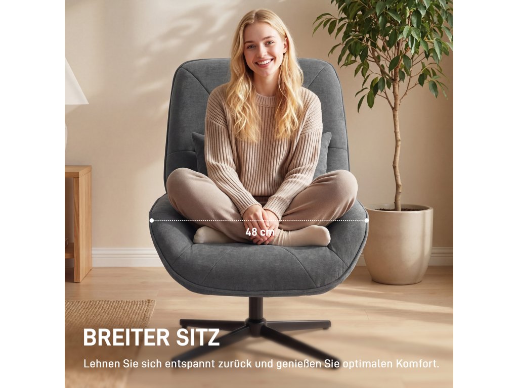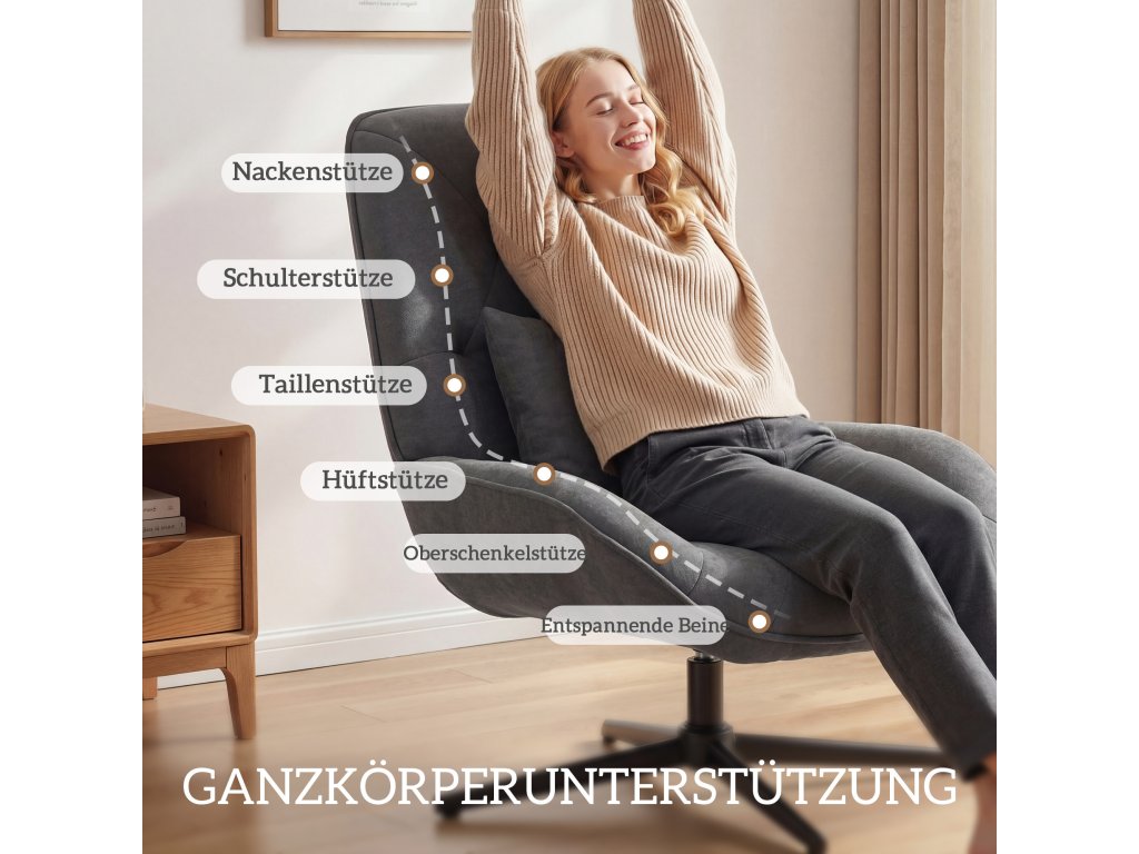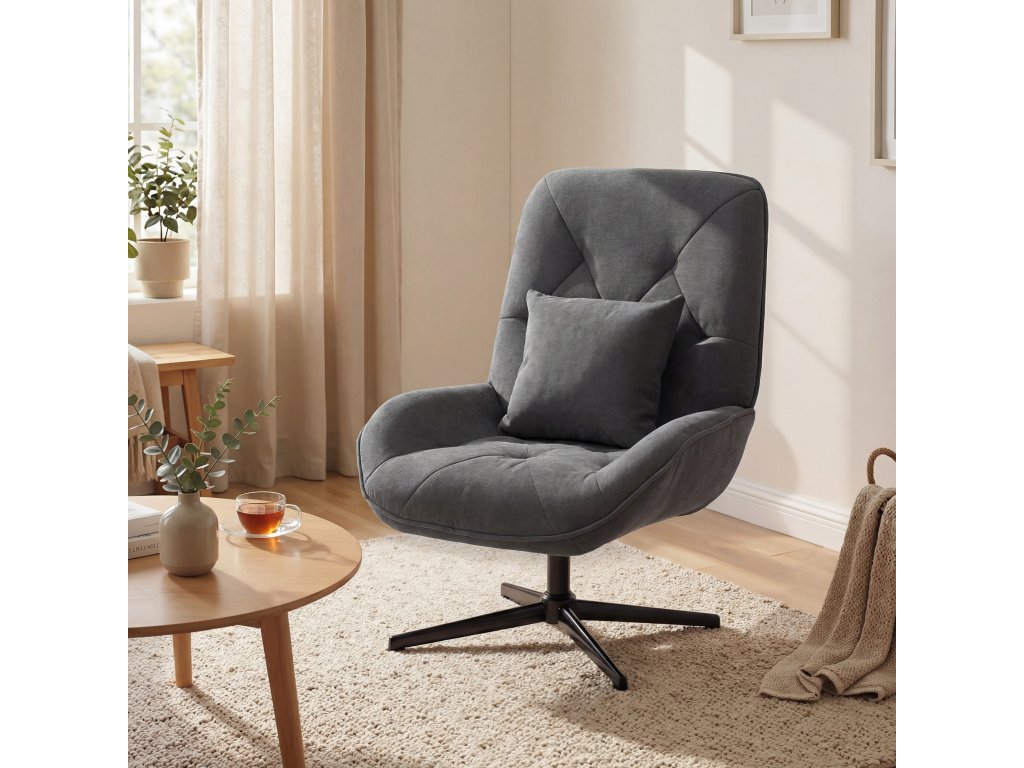 Kovová křížová základna: Robustní kovová křížová základna křesla do obývacího pokoje poskytuje spolehlivou stabilitu a unese až 120 kg – ideální pro každodenní použití a dlouhou životnost.