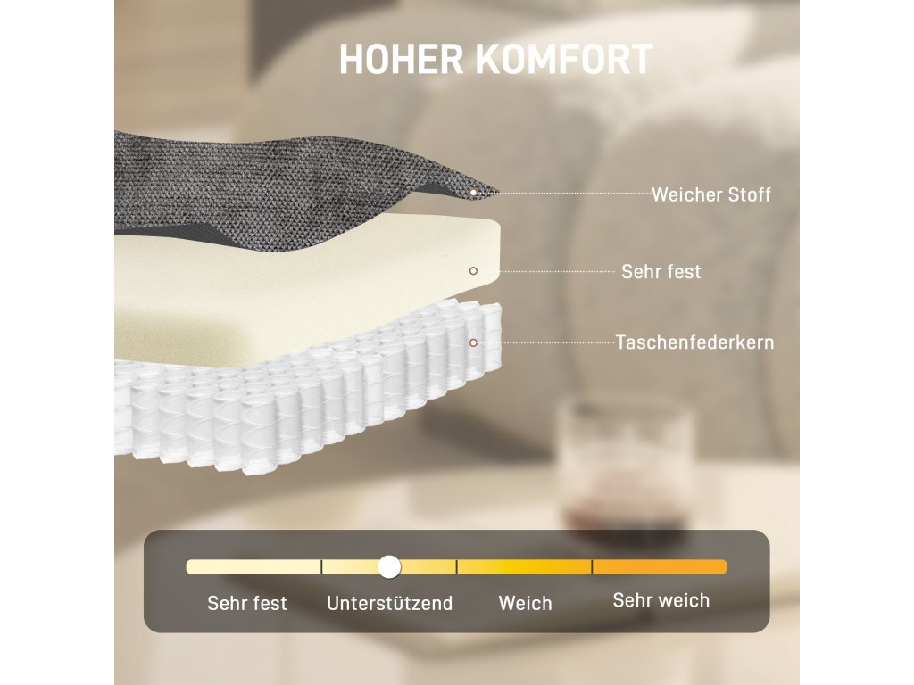 ✔ 10 cm pěnový sedák s taštičkovými pružinami poskytuje pružné pohodlí