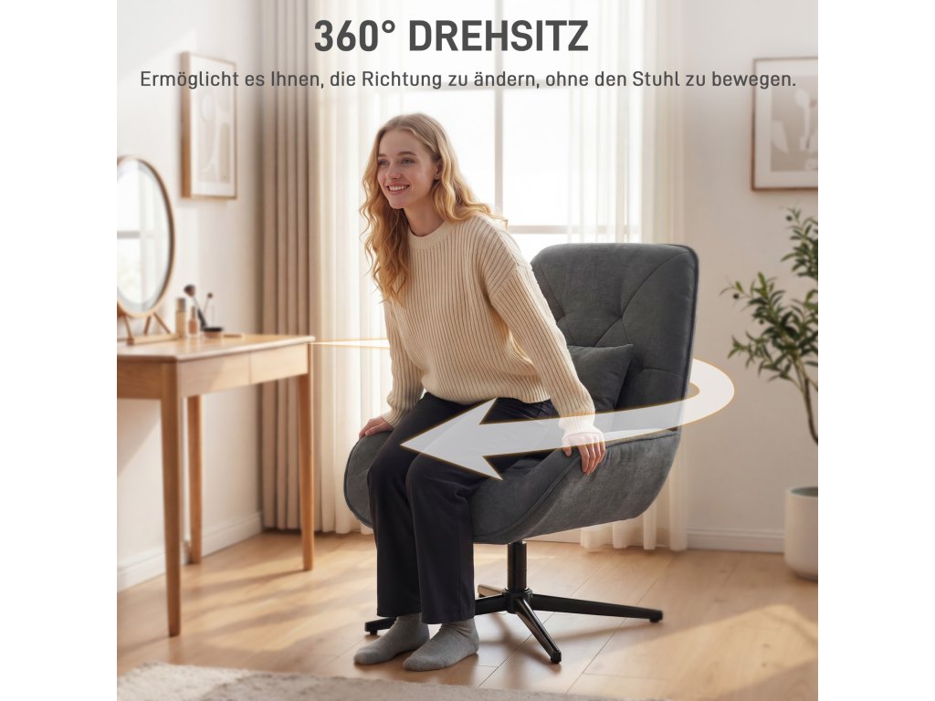 Snadné otáčení o 360°: Otáčivá funkce křesla umožňuje snadný pohyb, ať už si chcete povídat s přáteli, natahovat se po předmětech v blízkosti nebo relaxovat z jakéhokoli úhlu.