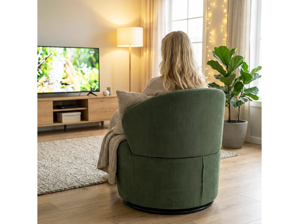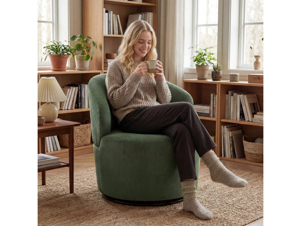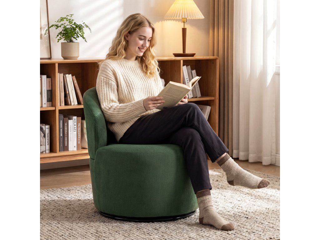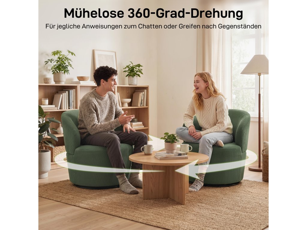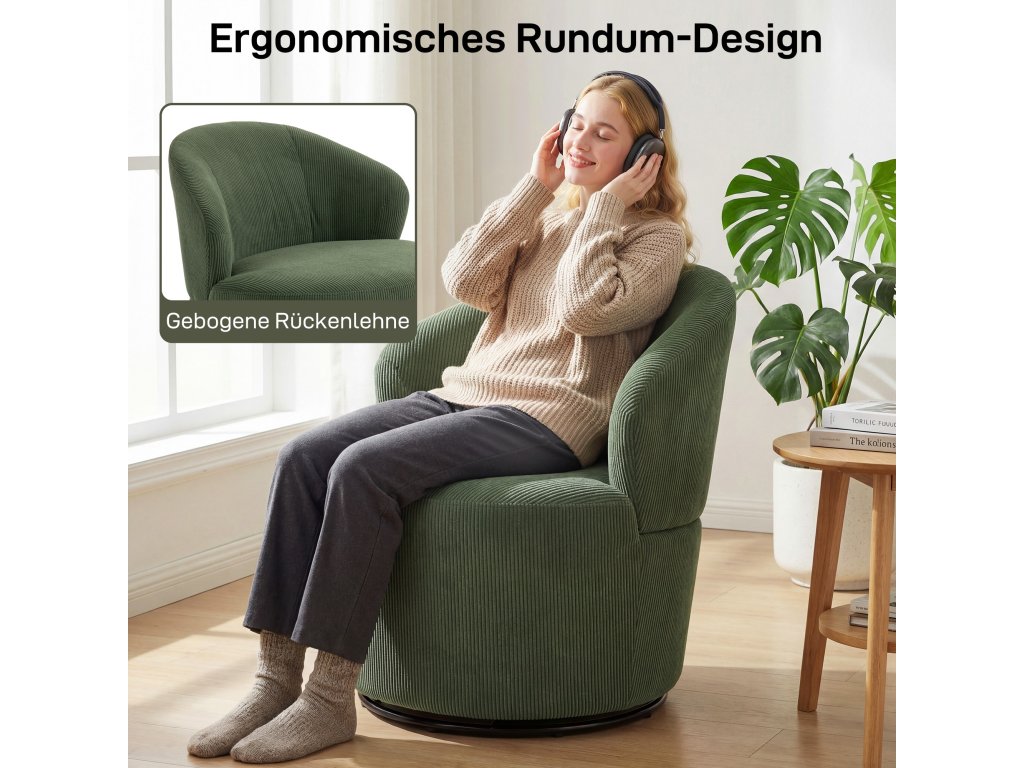 Konverzace v obývacím pokoji působí odpoutaně, když sedíte v klidu. Křeslo HOMCOM tento problém řeší: snadno se otočí o 360 stupňů, komunikuje s ostatními, zaboří se do ergonomického opěradla a užívejte si měkké manšestrové látky. Najděte si v tomto elegantním křesle do obývacího pokoje ideální polohu pro pohodlí a spojení.