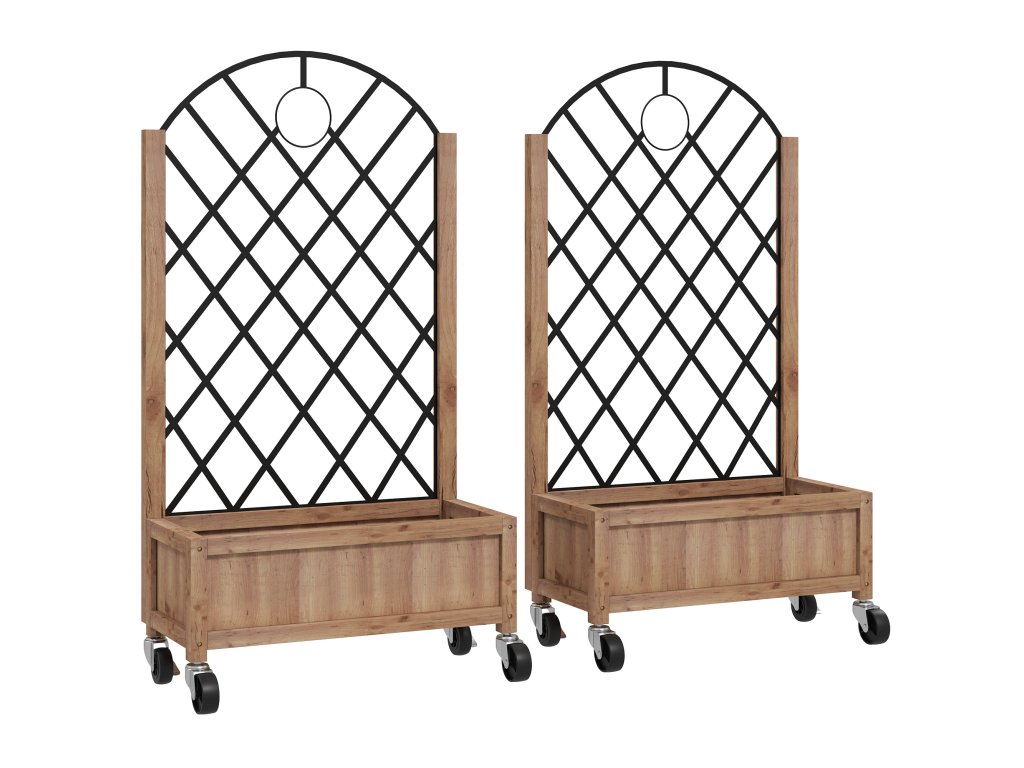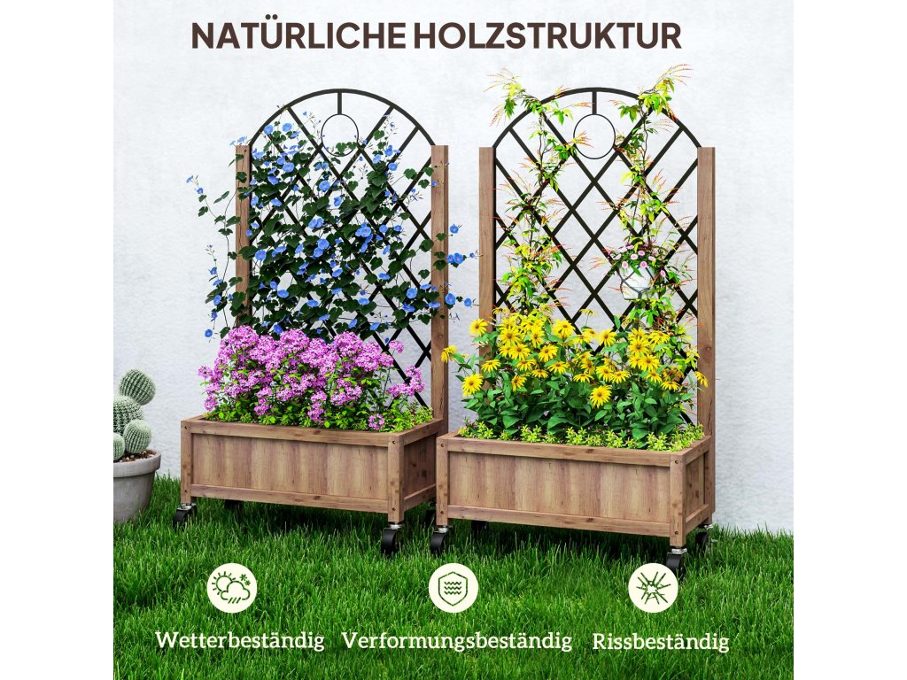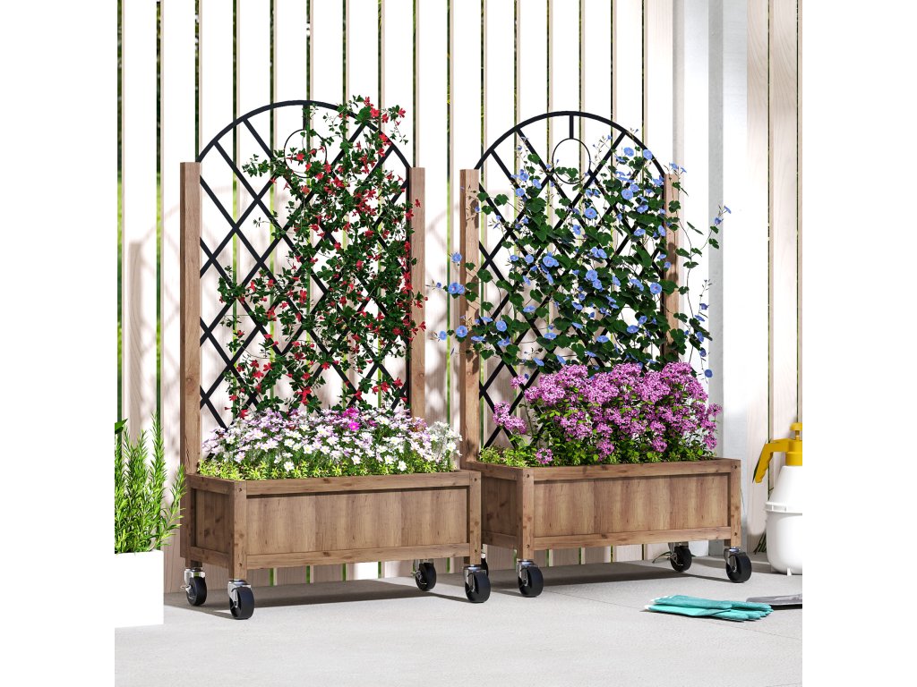 Outsunny 2dílná sada vyvýšených záhonů s kolečky, treláž, květináč a truhlík, dřevo, 52x25x97cm, hnědá