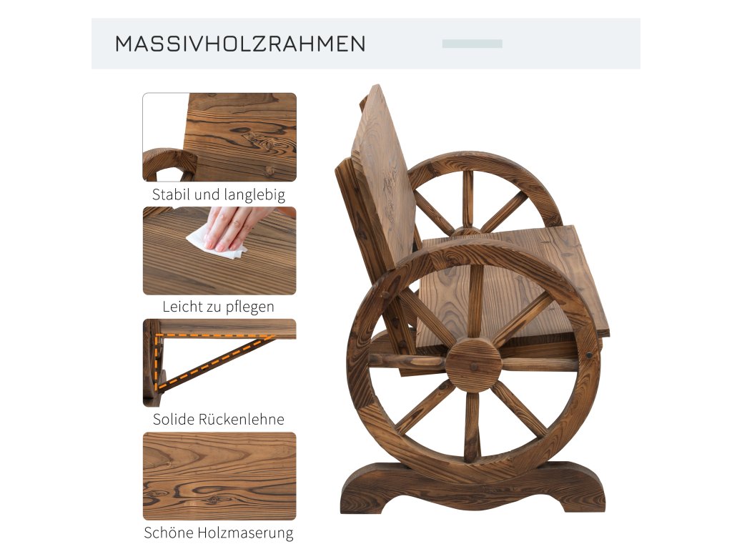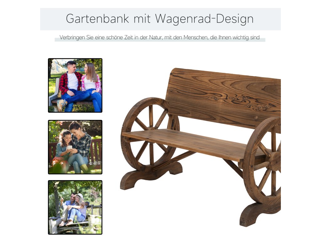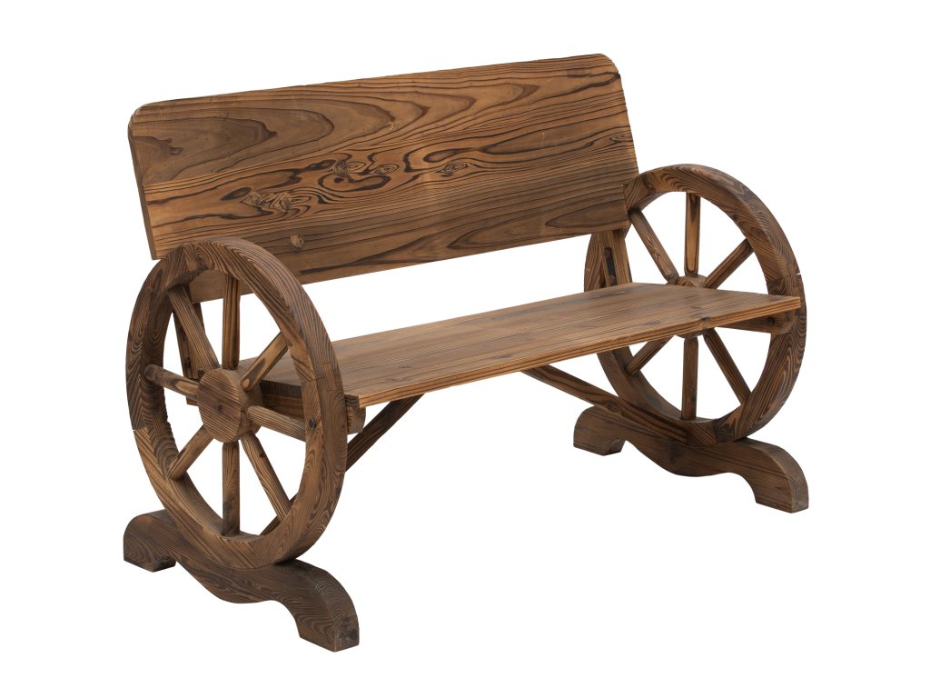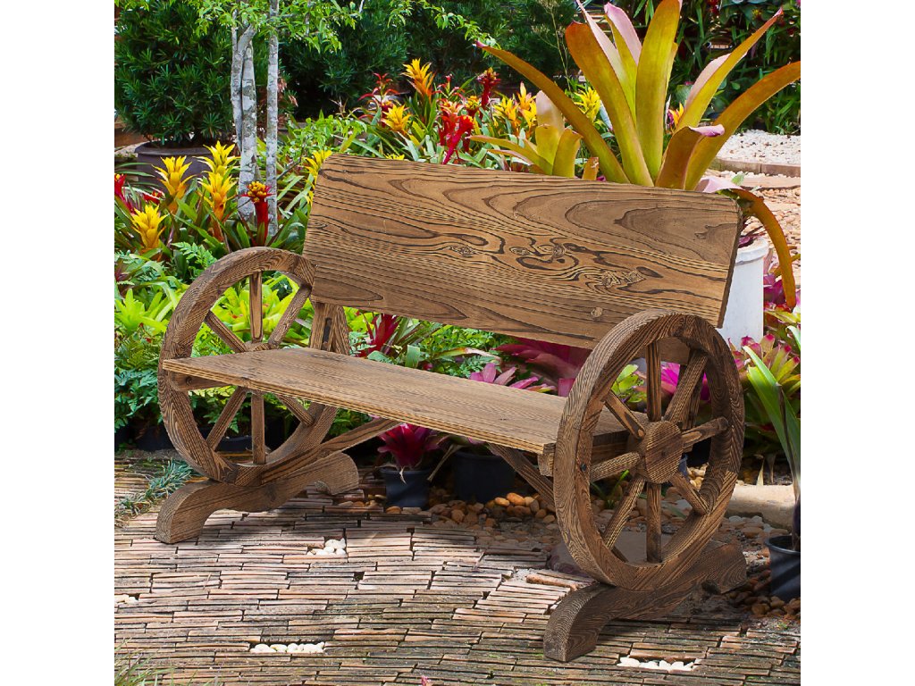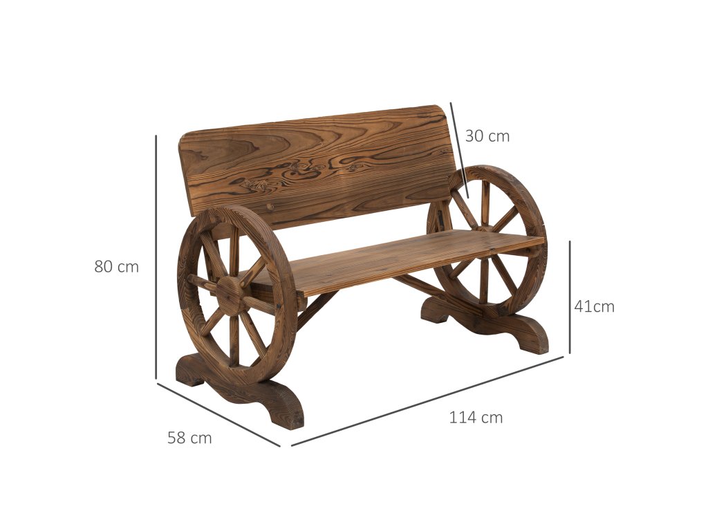 Outsunny 2místná zahradní lavice z masivního dřeva s područkou, lavice s designem kola od vozu, zahradní nábytek s nosností 250 kg, rustikální lavice, 114 x 58 x 80 cm, hnědá barva