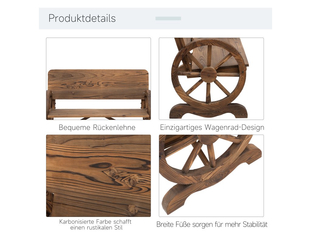 Vneste do své zahrady jedinečný rustikální styl. Naše zahradní lavička s elegantními područkami ve tvaru kola od vozu promění tuto lavičku z obyčejného pohodlného sedadla v jedinečnou atrakci. Konstrukce z masivního jedlového dřeva poskytuje onen jistý autentický vzhled a nabízí optimální pohodlí s nosností až 250 kg. Proměňte svou zahradu v něco výjimečného.