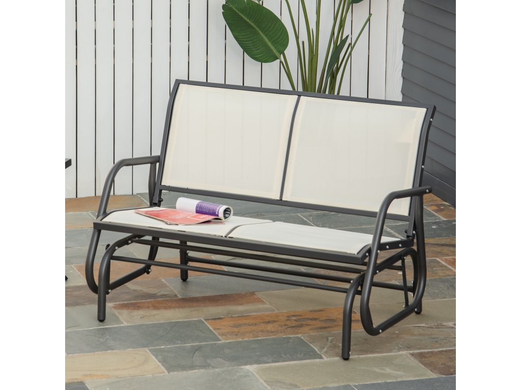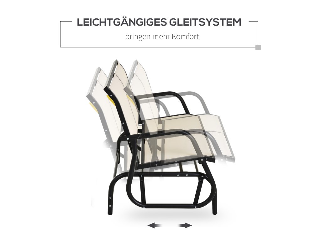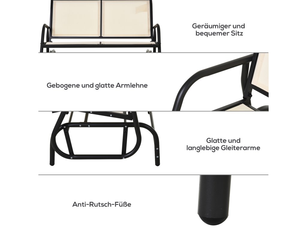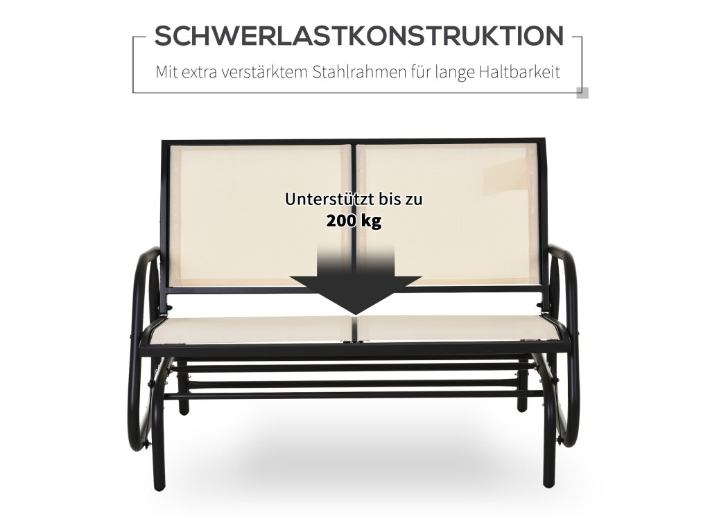 Outsunny 2místné houpací křeslo zahradní lavice s houpacím mechanismem zahradní houpací lavice kovová lavice do 200 kg nosnosti zahradní nábytek na zahradu, terasu, 120 x 70 x 85 cm černá+béžová