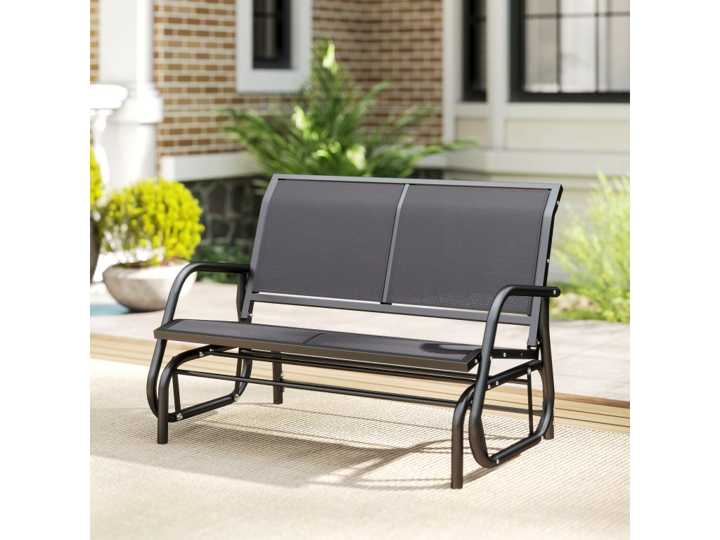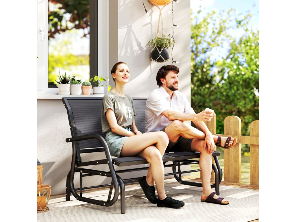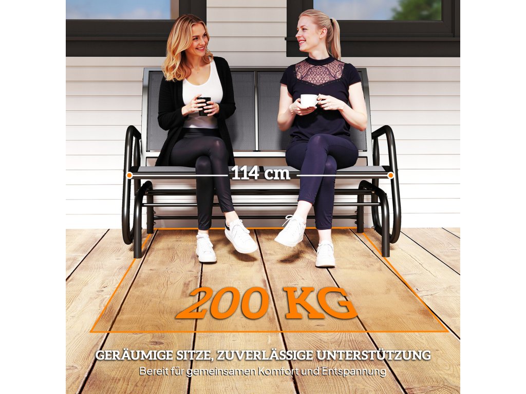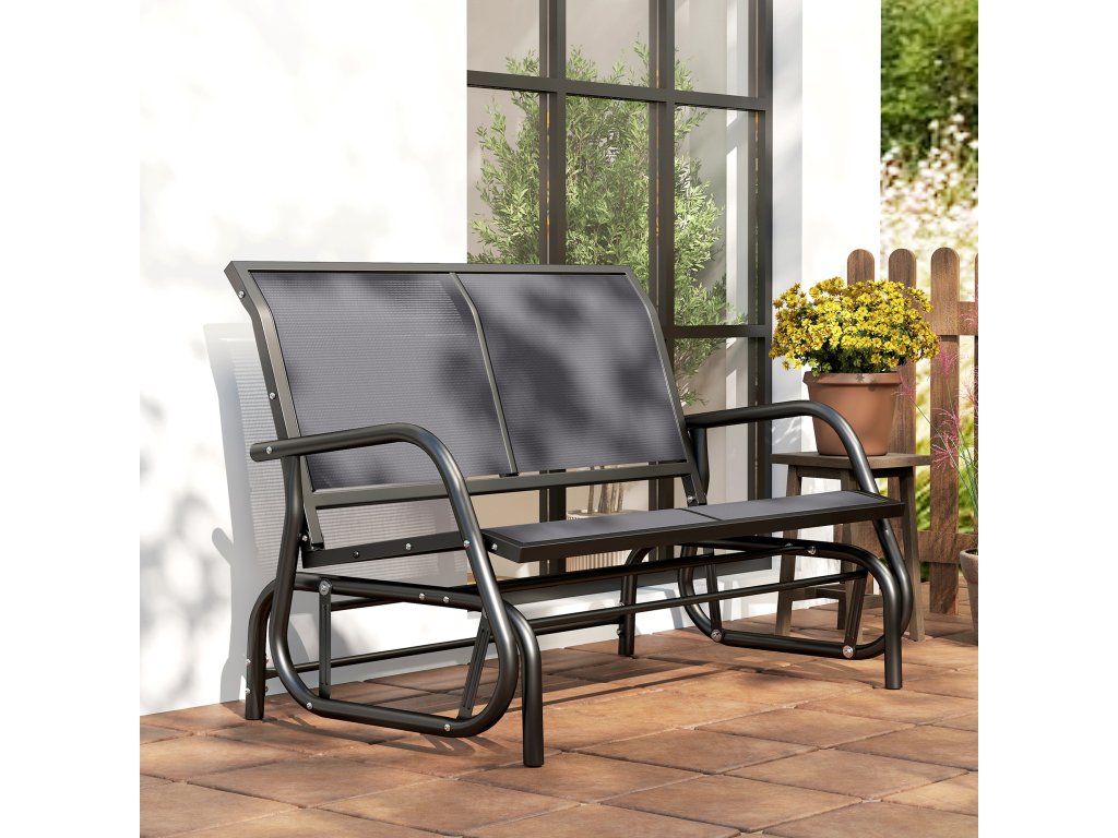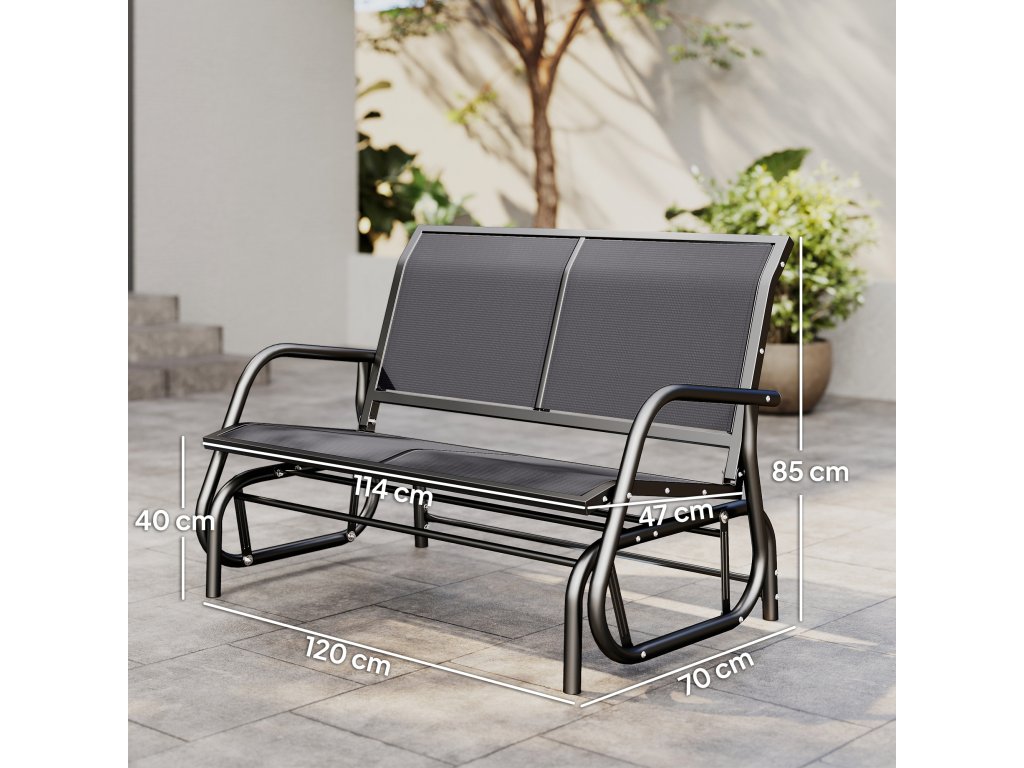 Outsunny 2místné houpací křeslo zahradní lavice s houpacím mechanismem zahradní houpací lavice kovová parková lavice, nosnost do 200 kg zahradní nábytek pro zahradu, terasu, verandu 120 x 70 x 85 cm šedá