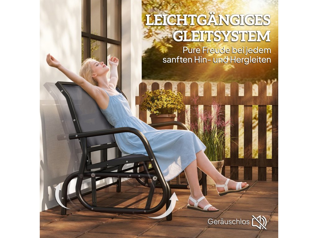 Naše vysoce kvalitní balkonové lehátko v klasickém stylu od společnosti Outsunny se skvěle hodí na vaši zahradu nebo verandu. Funkce houpání zajišťuje relaxační den na zahradě a robustní kovová konstrukce nabízí dlouhou životnost. Potah z jemné síťoviny na sedáku a opěradle je prodyšný a vybízí k pohodlnému sezení. Jednoduše se posaďte na toto skvělé zahradní houpací křeslo a nechte svou mysl bloudit.