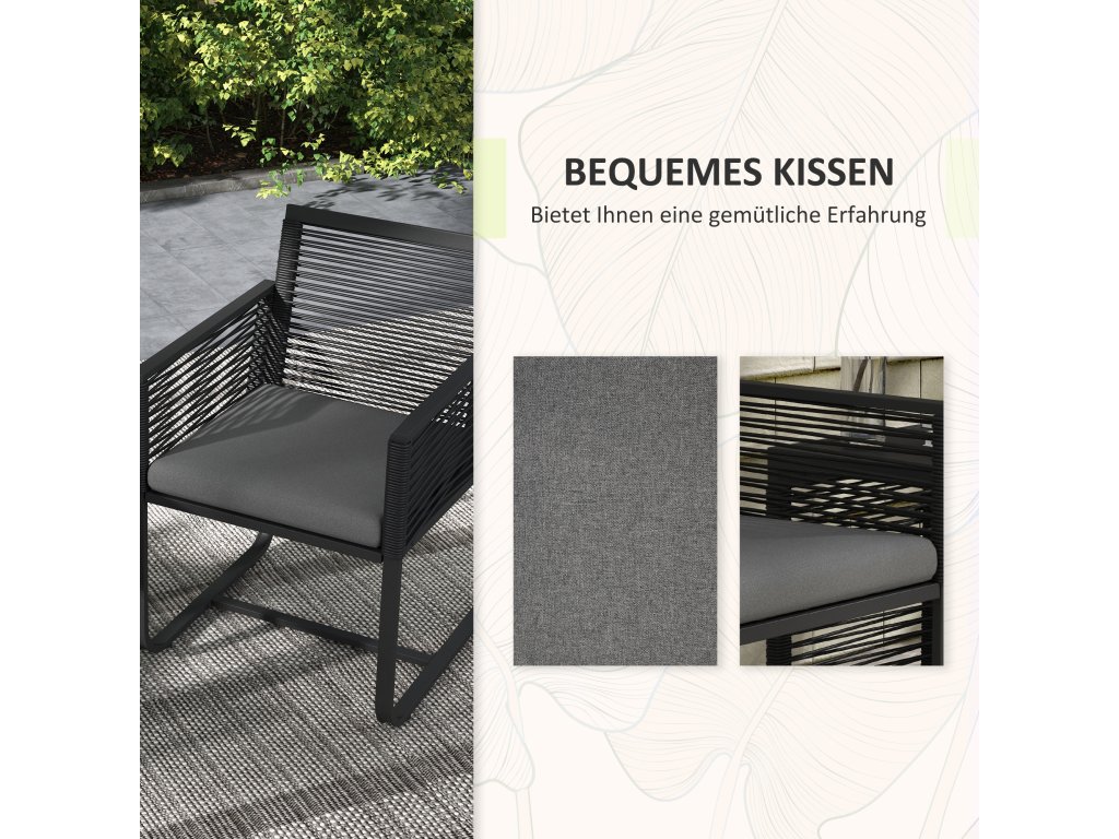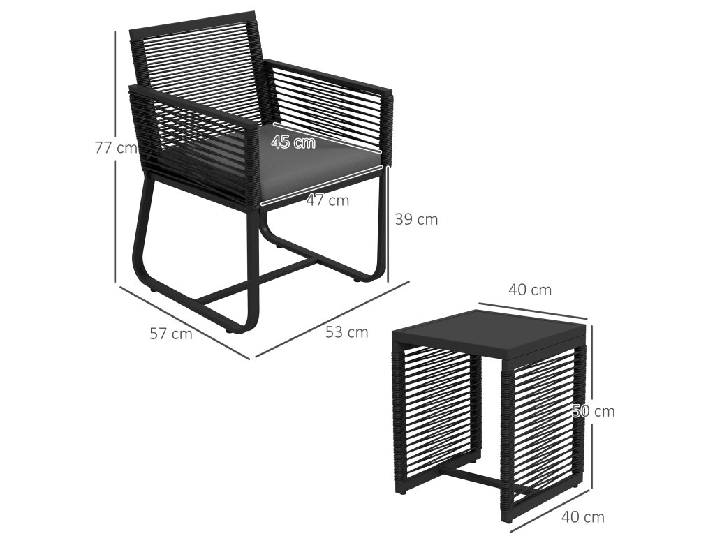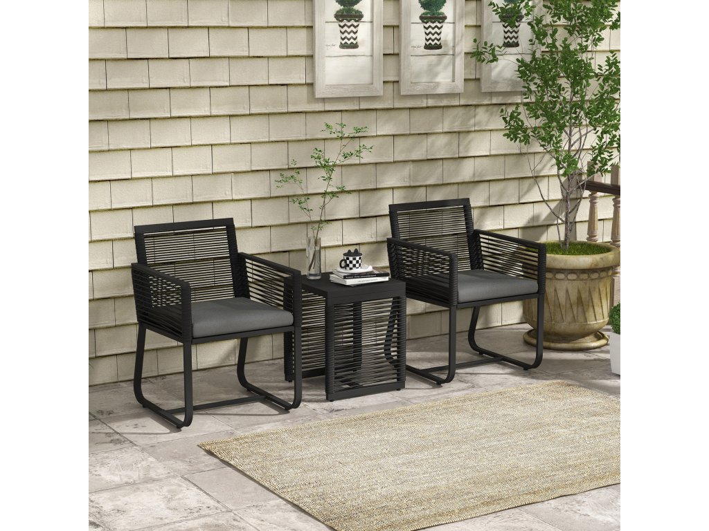 Outsunny 3dílná bistro sada, balkonová sada, sada na terasu, odolná proti povětrnostním vlivům, moderní design, 53 cm x 57 cm x 77 cm, černá + šedá