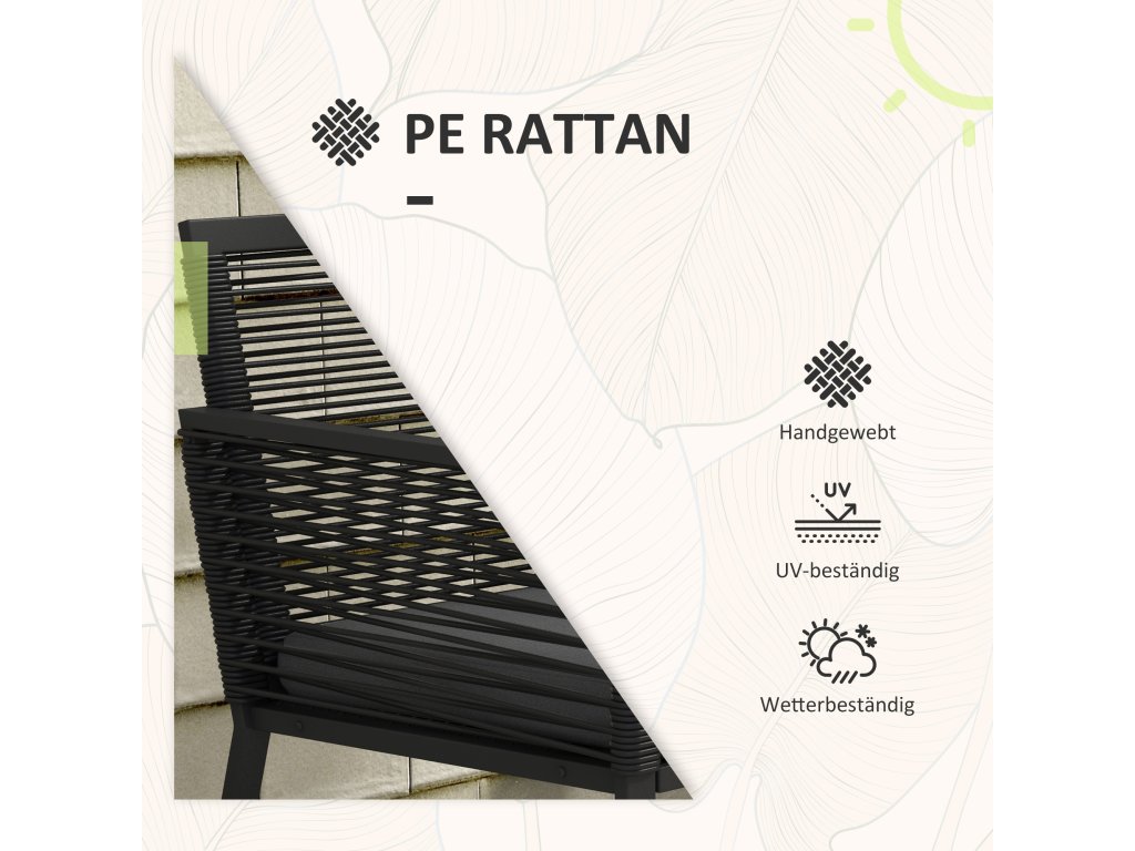 ✔ Materiály: PE ratan, ocel, polyester, tvrzené sklo