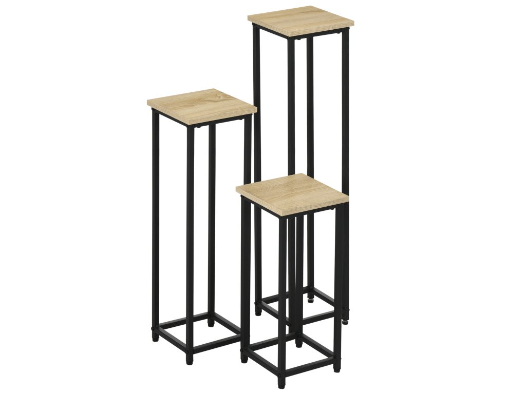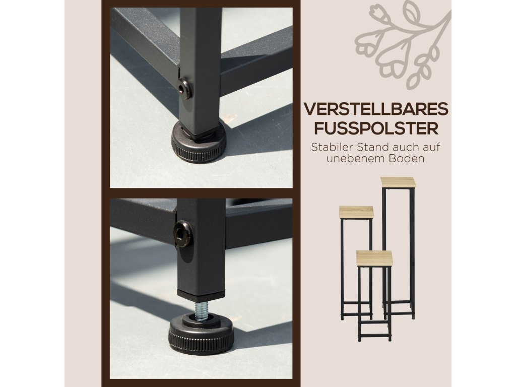 Outsunny 3dílná sada stojanů na rostliny stohovatelná, šetřící místo 21 cm x 21 cm x 50/70/90 cm ocel hnědá + černá