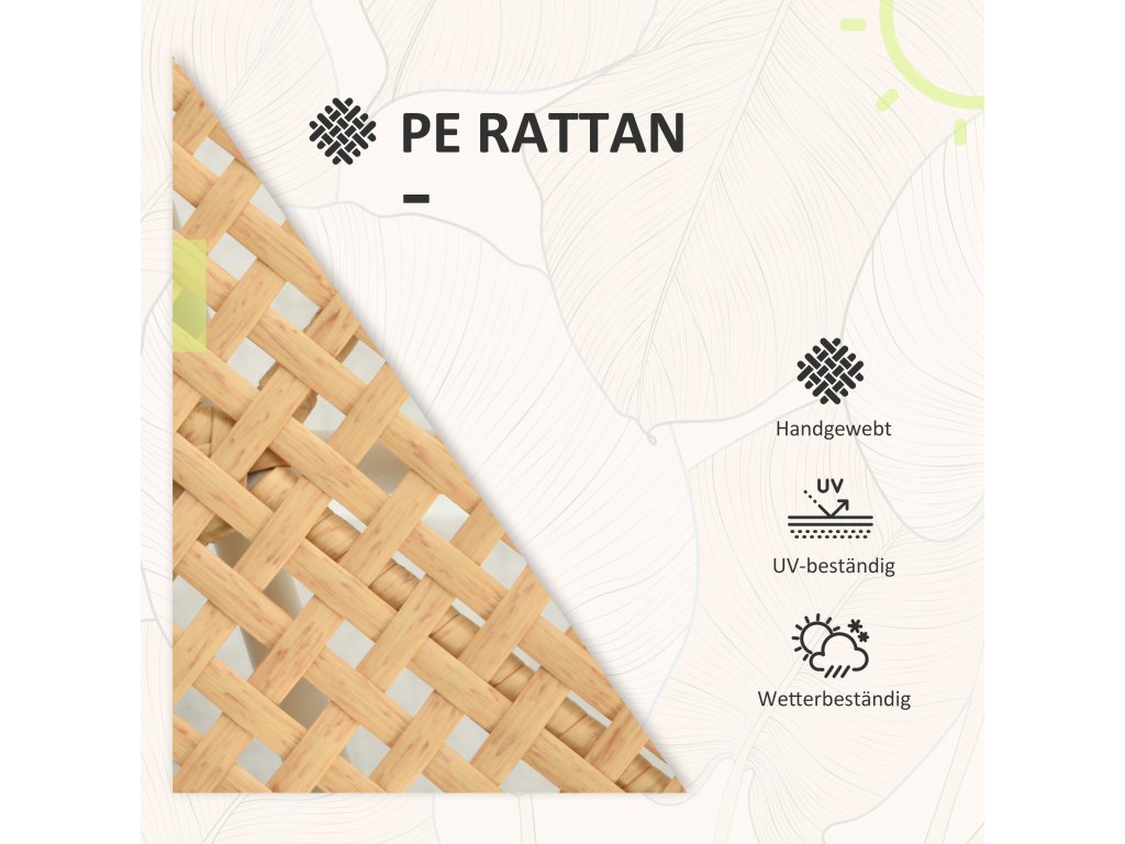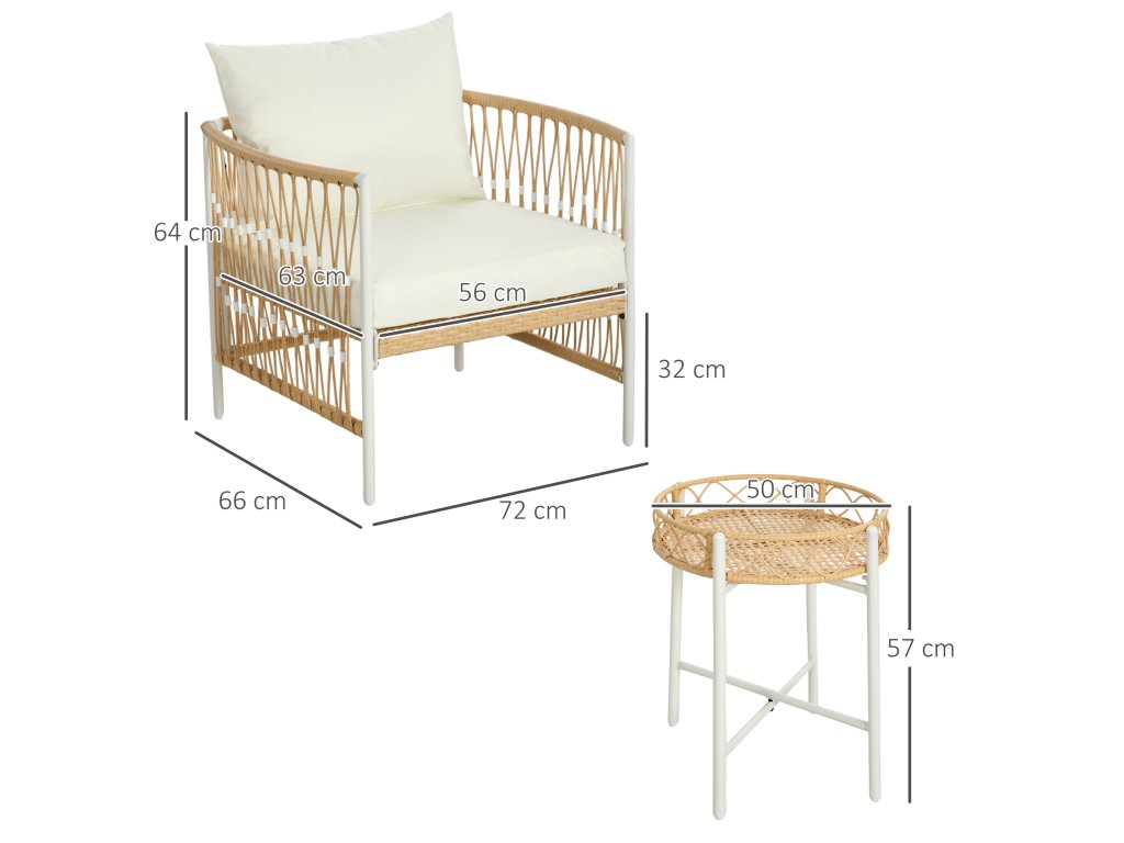 Proměňte svou zahradu v místo setkávání s naším ratanovým bistro setem Outsunny. Okouzlující sada, která dodá vašemu zahradnímu nábytku elegantní nádech. Vychutnejte si pohodlí silně polstrovaných sedáků a opěradel s pratelnými potahy pro snadnou údržbu. Stylovým doplňkem každého balkonu nebo terasy je tato třídílná terasová souprava, která se skládá ze dvou ručně tkaných ratanových židlí PE a odpovídajícího stolku.