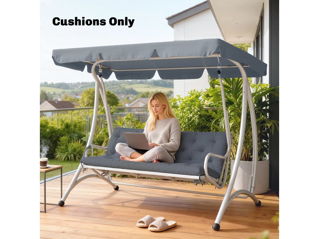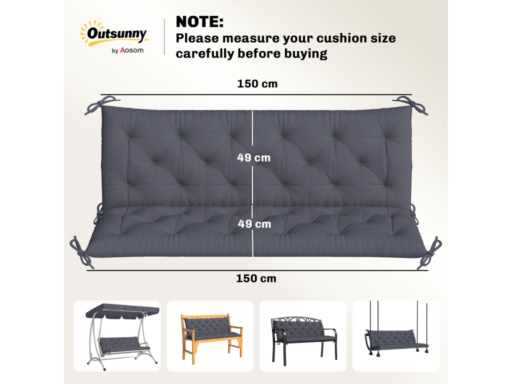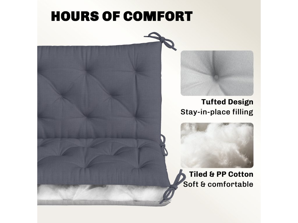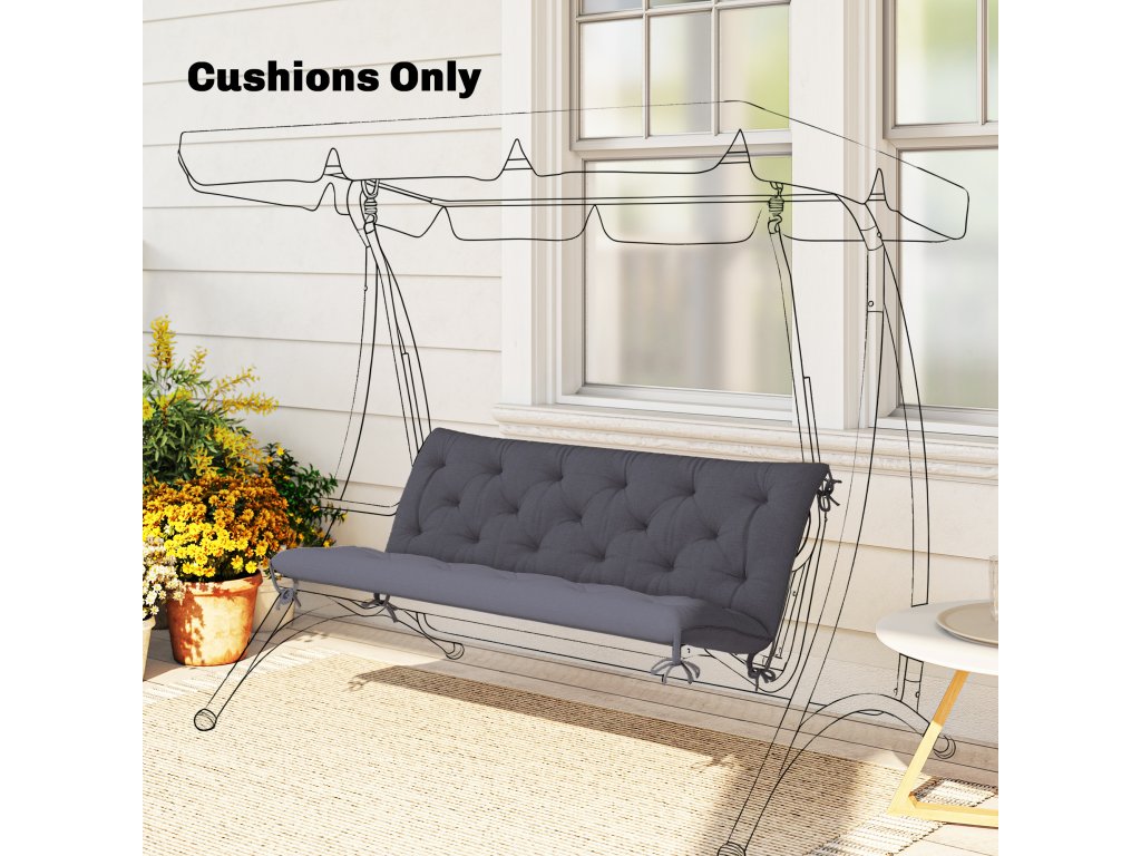Outsunny 3místný polštář na lavici 150 x 98 x 8 cm Polštář na sezení s popruhy Polštář na opěradlo pro vnitřní/venkovní použití Polštářek na lavici zahradní lavice zahradní nábytek Hollywoodské houpačky Tmavě šedá barva