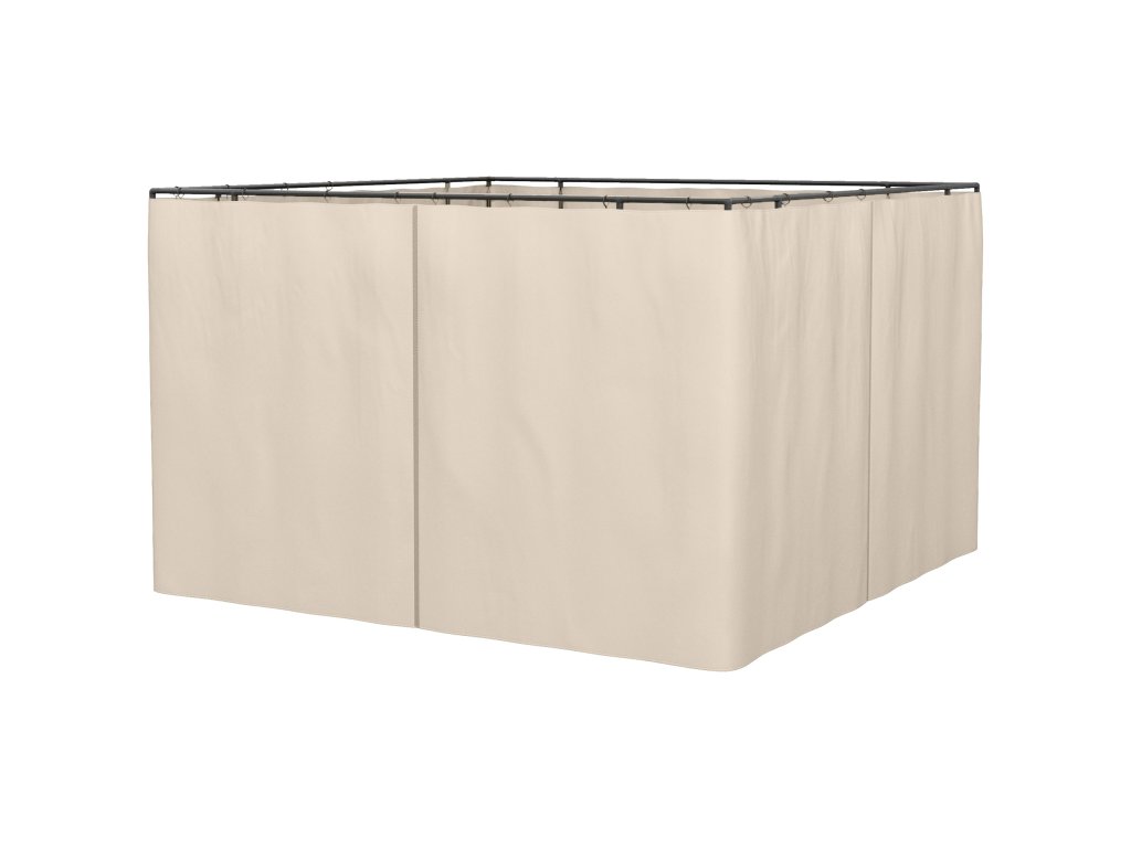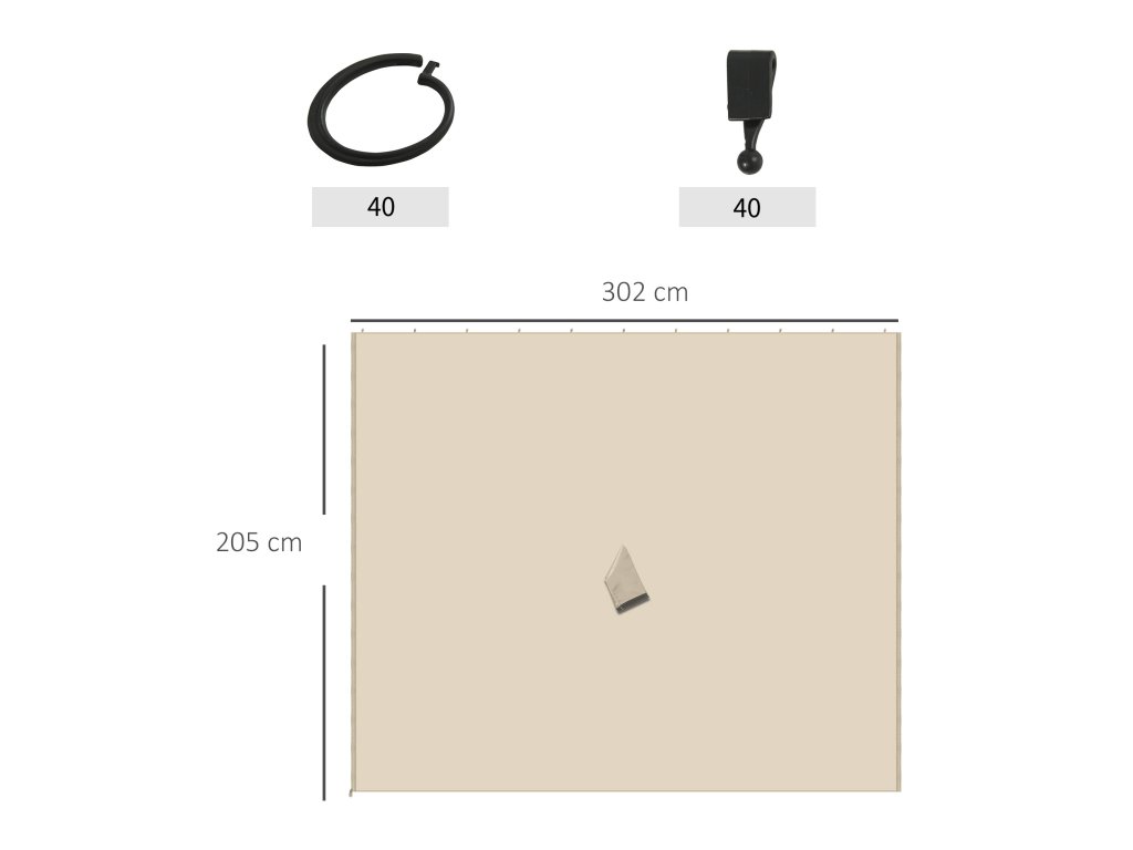 - Součástí dodávky je příslušenství: 4 x boční stěna (rozměry: 302L x 205H cm), 40 x háčky, 40 x C-kroužky.
