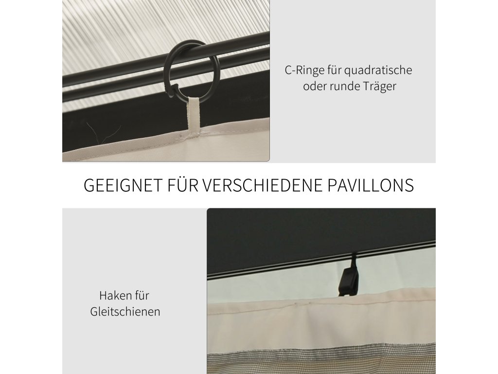Outsunny 4 náhradní závěsy pro altány 3x3 m, robustní, pro tyče a posuvné zábradlí, dvojitý zip, béžová barva