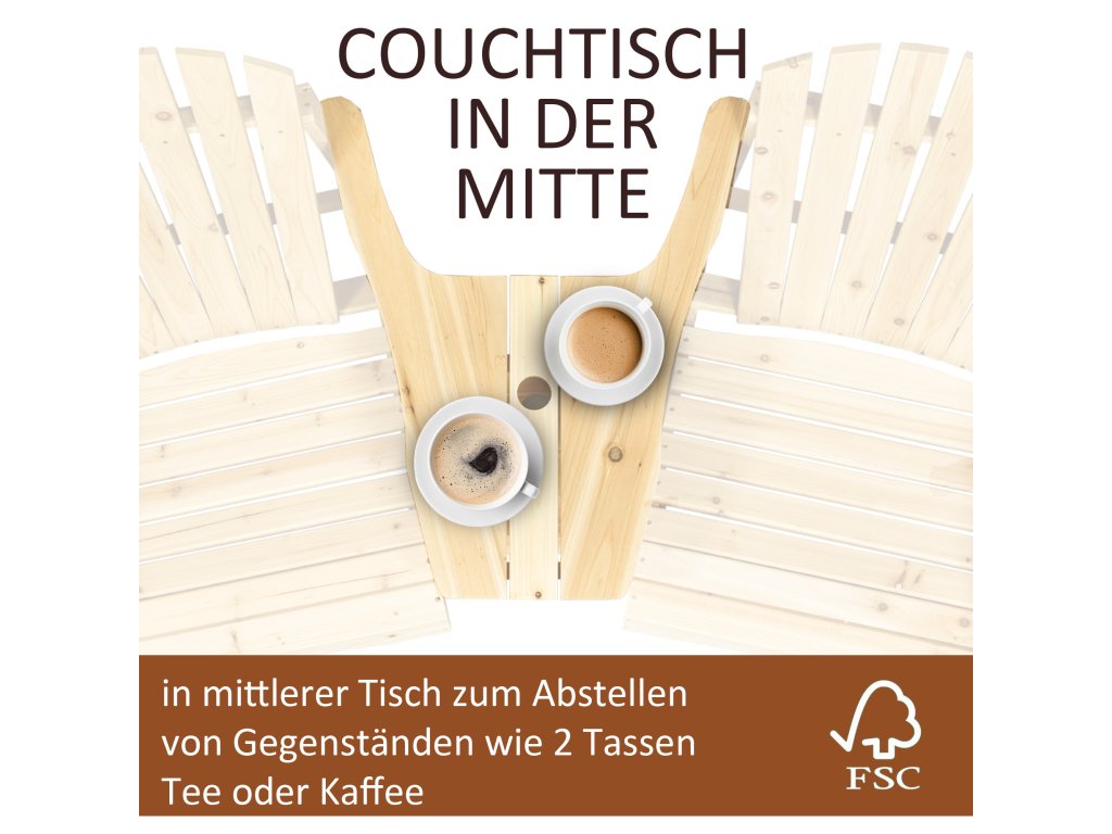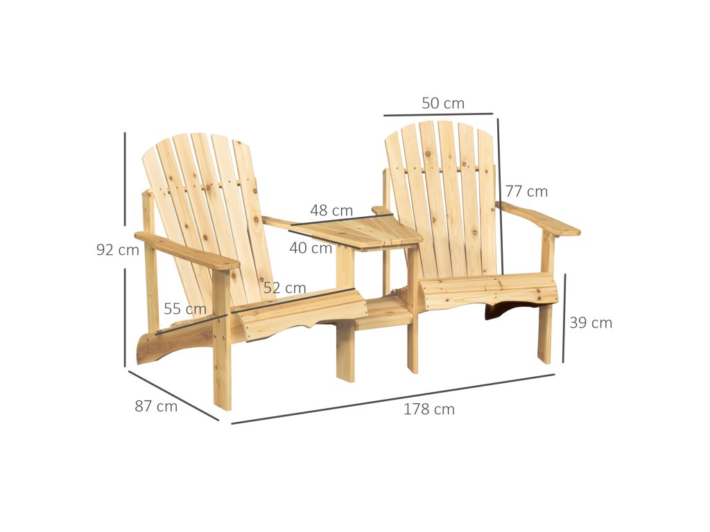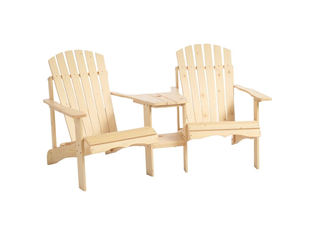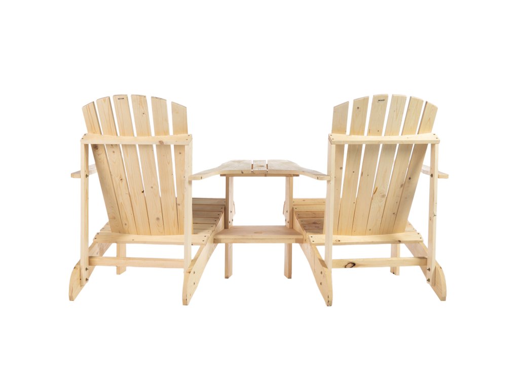 - Kombinace dvou křesel: Užijte si klid venku sami nebo ve společnosti s touto rustikální kombinací dvou křesel Adirondack. Připojený rohový stolek mezi křesly vám pomůže mít nápoj, knihu nebo chytrý telefon na dosah.
