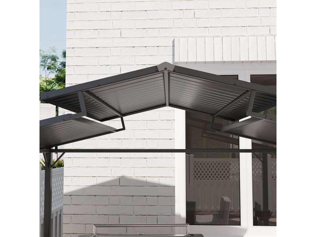 - ✔ Dvouvrstvá konstrukce střechy pergoly umožňuje snadný průchod větru a kouře