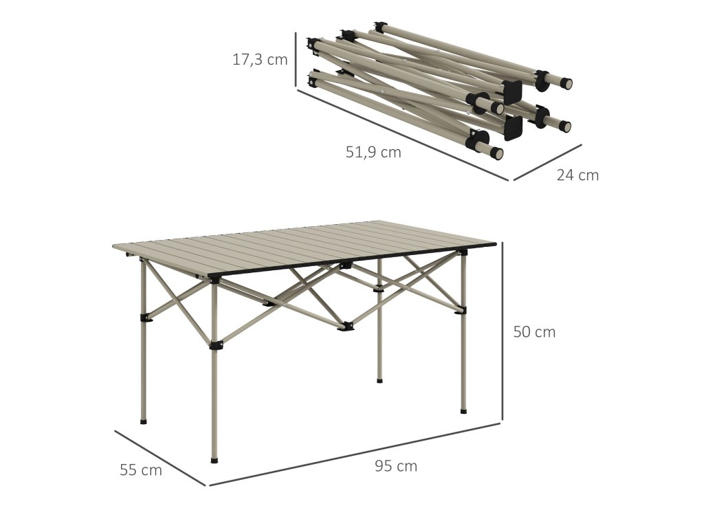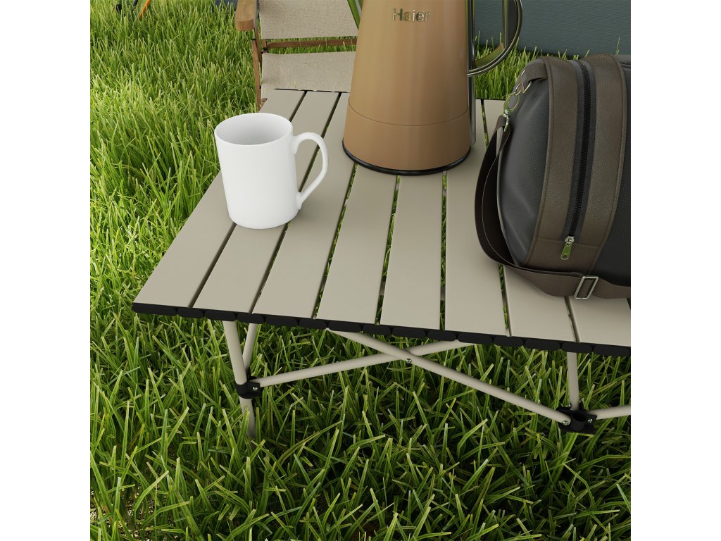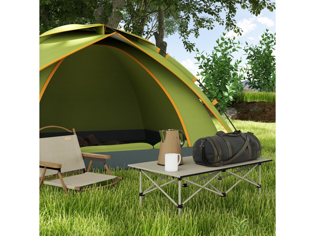 Outsunny Camping Table Skládací stůl s rolovací deskou Hliníkový zahradní stůl pro 2 osoby 95 x 55 cm Khaki