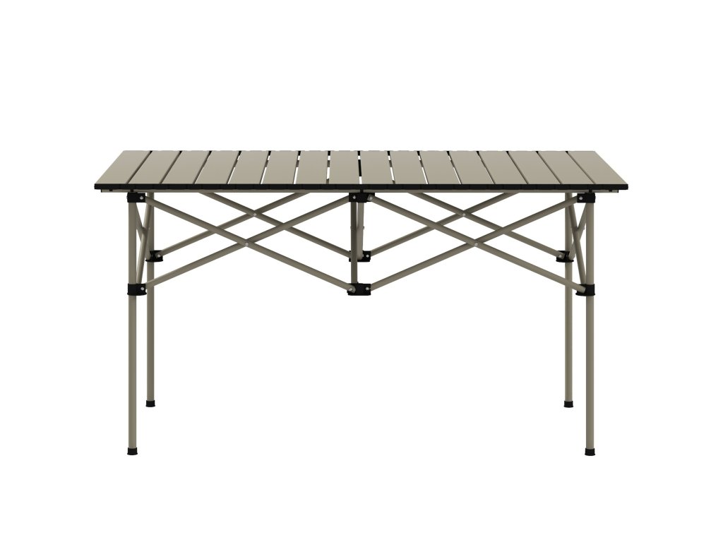 - Hliníková konstrukce: Tento kempinkový stůl, vyztužený dodatečným práškovým nástřikem, zajišťuje stabilitu a odolnost. Písmeno "X" v horní části rámu zajišťuje dodatečnou stabilitu.