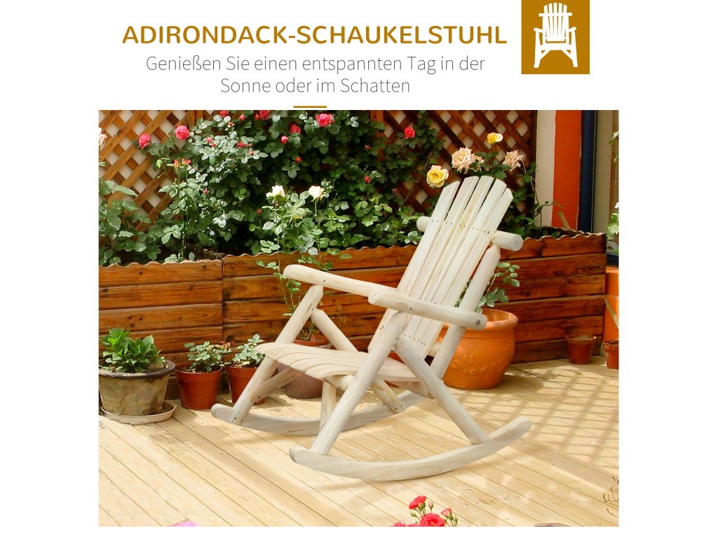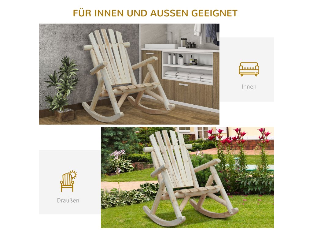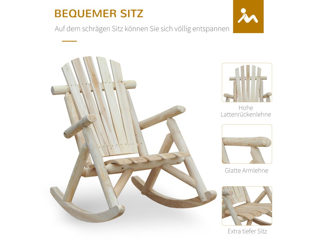 Outsunny dřevěné houpací křeslo Houpací křeslo s vysokým opěradlem Zahradní křeslo odolné proti povětrnostním vlivům do 113 kg s možností zatížení Relaxační křeslo do obývacího pokoje Zahrada, trávník, balkon Příroda