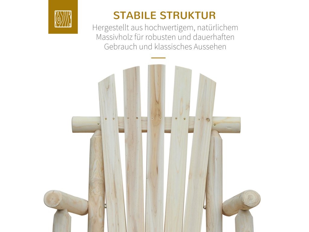 Pokud hledáte odpočinkové křeslo na zahradu, balkon nebo terasu, je pro vás toto dřevěné houpací křeslo ideální volbou. Relaxační lehátko má podběhy a je vyrobeno výhradně z jedlového dřeva. Díky svému složení je zahradní houpací křeslo s podběhy mimořádně stabilní a zároveň dekorativní. Venkovní houpací křeslo má vysoké opěradlo, které v kombinaci s ergonomicky tvarovaným sedákem vytváří jedinečný zážitek ze sezení.