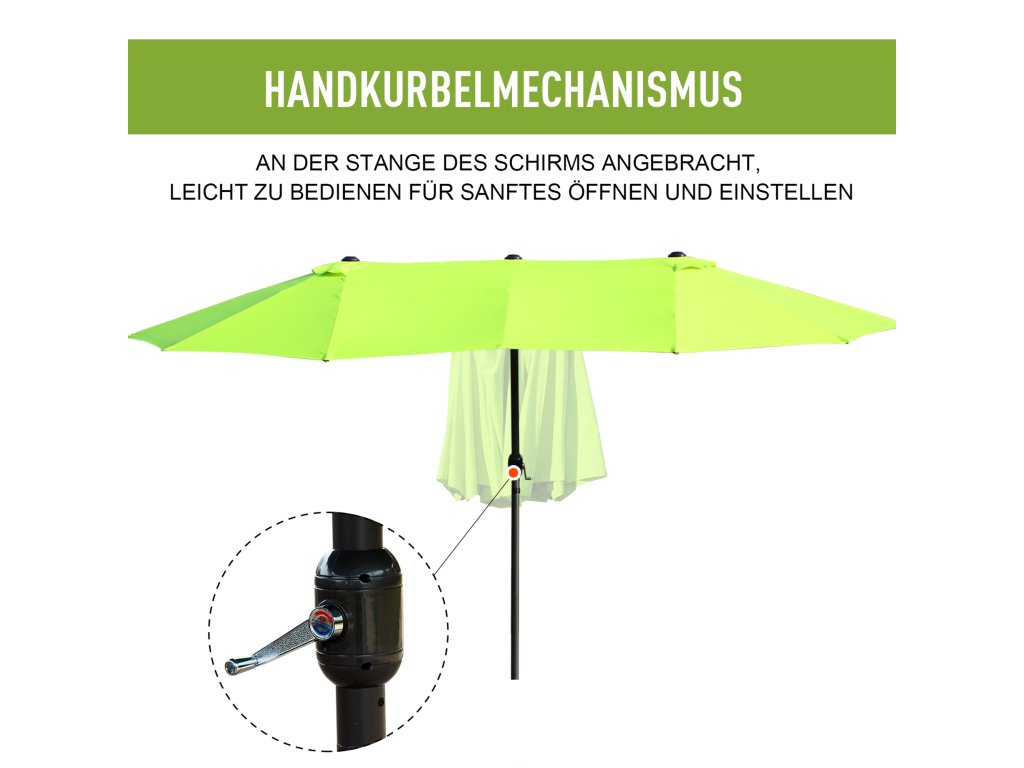 Outsunny dvojitý slunečník 455 x 270 cm zahradní slunečník s ruční klikou oválná stabilní kovová tyč slunečník na trhu dvojitý slunečník slunečník na terasu ochrana proti slunci na pláž balkon terasa zahrada zelená