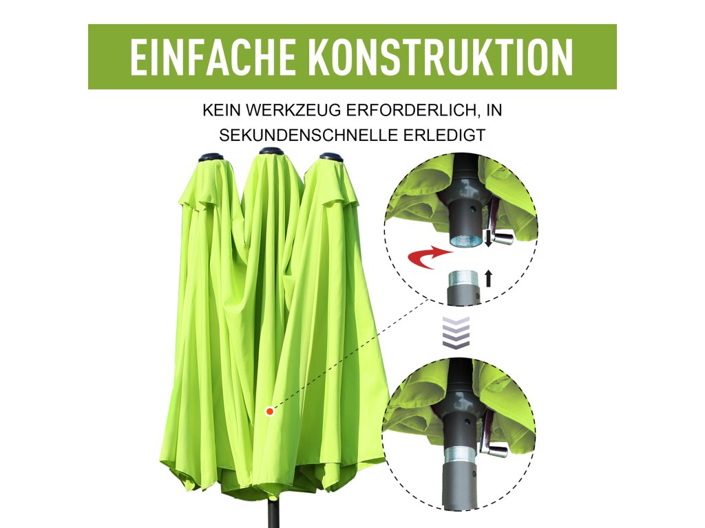 - ✔ Rychlé a snadné sestavení a sundání slunečníku