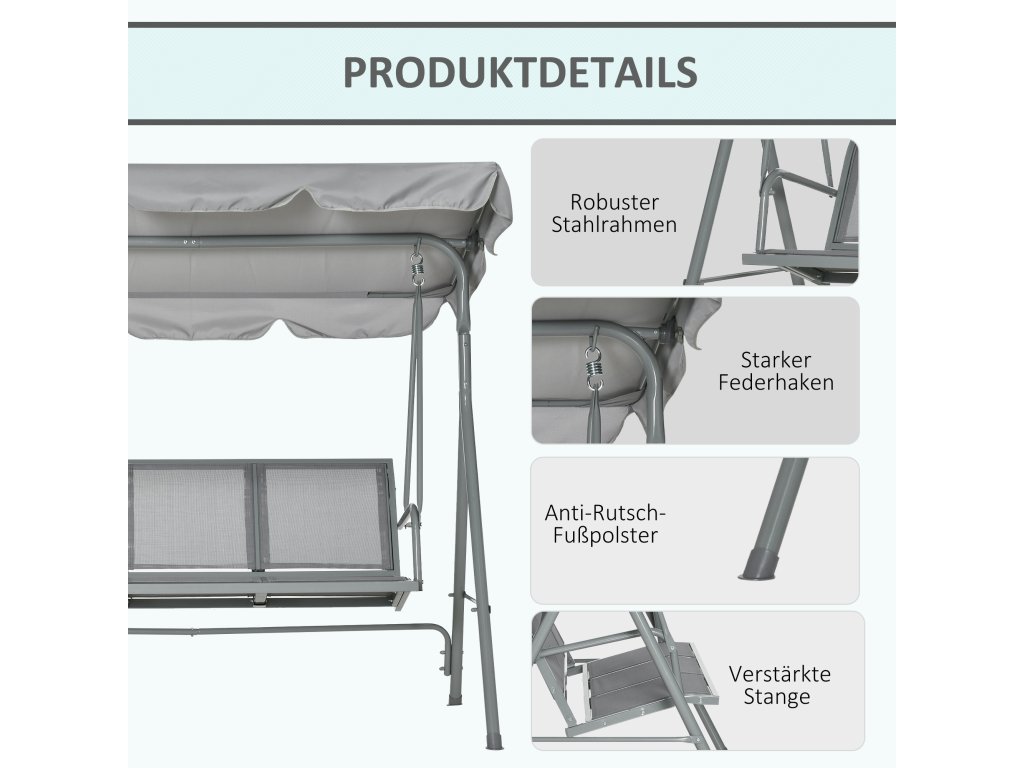 - Stylový design: Díky elegantnímu designu je tato zahradní houpačka se stříškou ideální pro vylepšení vaší zahrady a venkovního prostoru