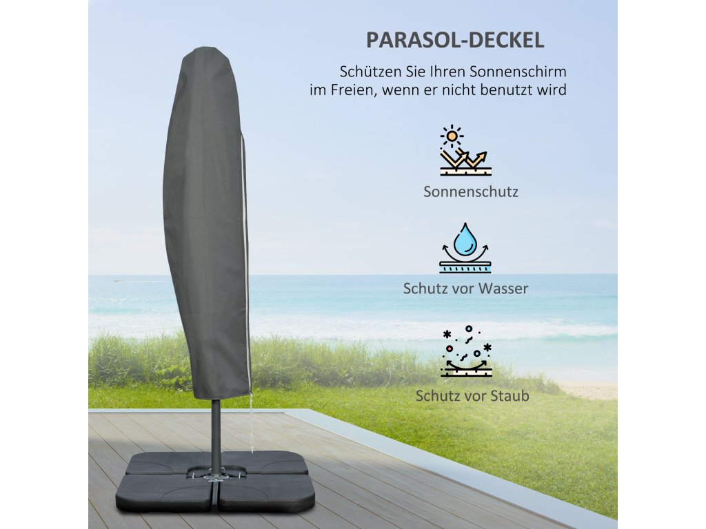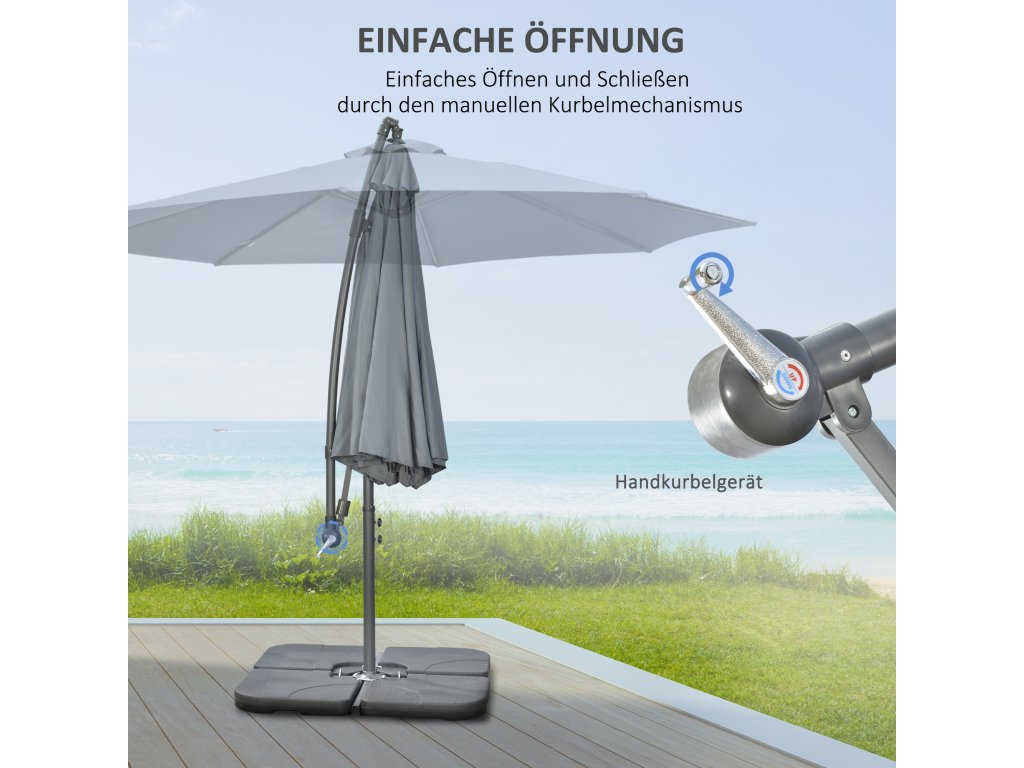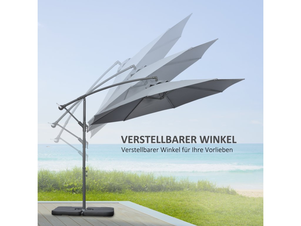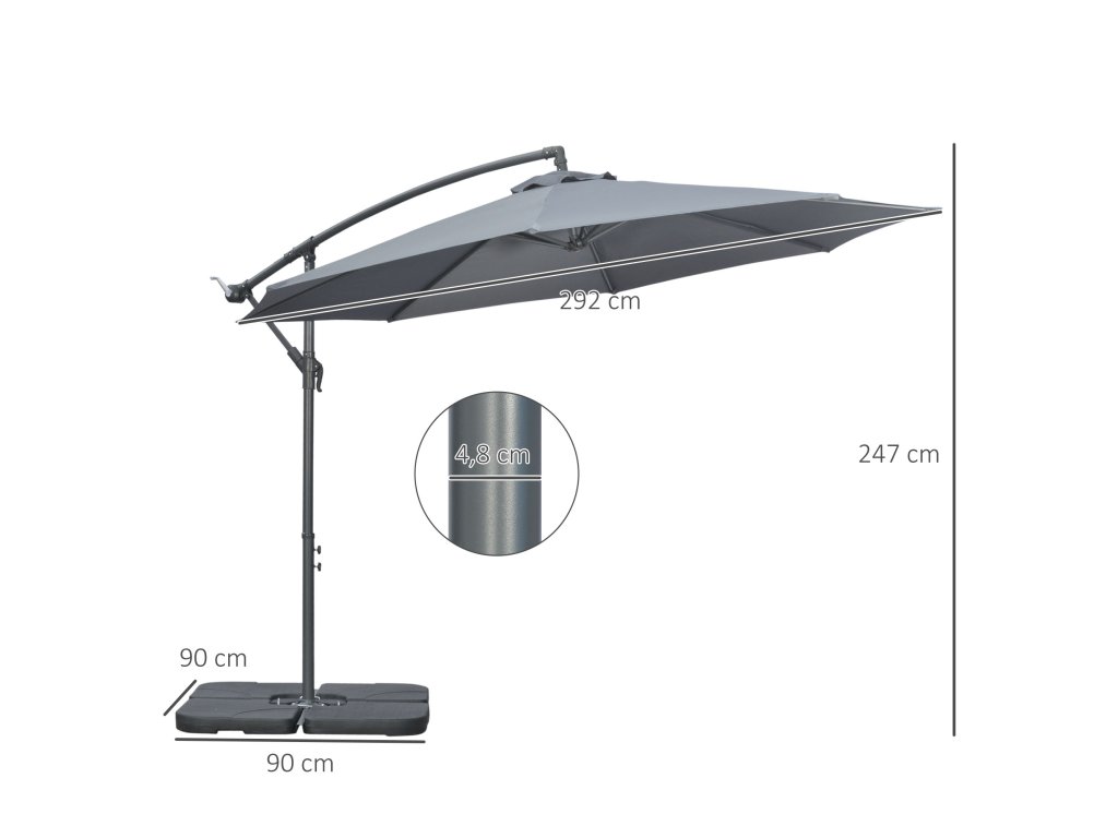 Outsunny konzolový zahradní slunečník, včetně křížového podstavce, odolný proti povětrnostním vlivům, 292 cm x 292 cm x 247 cm, šedý