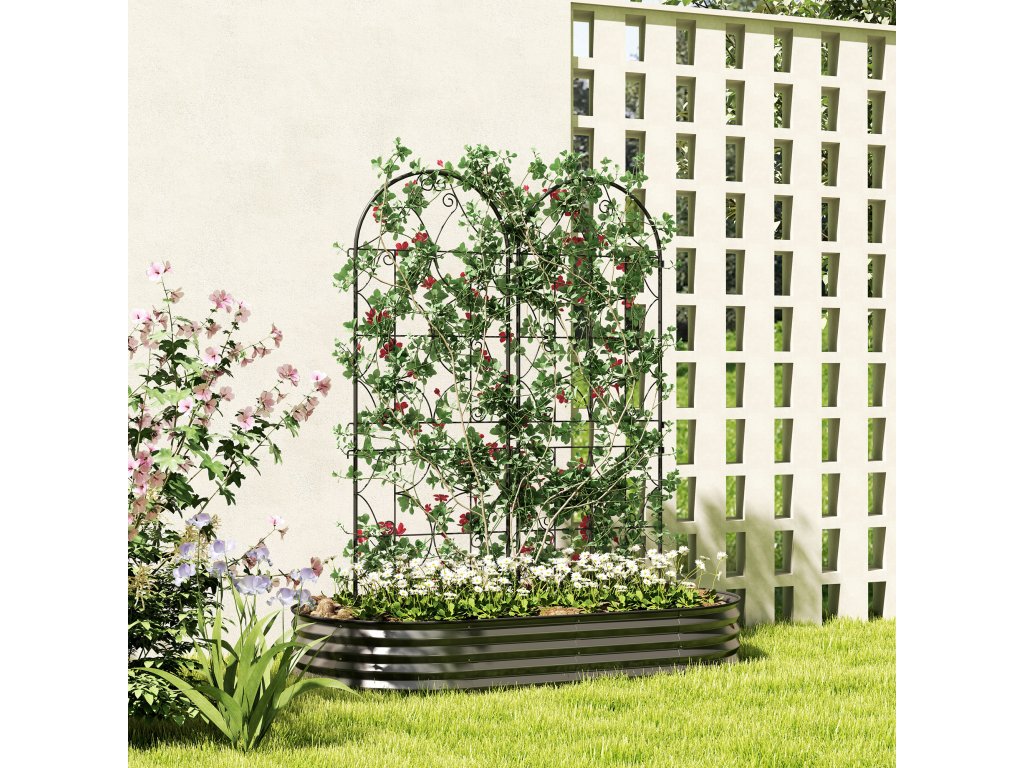 Outsunny kovová popínavá mřížka sada 2 nerezových podpěr pro popínavé rostliny 50x150 cm černá