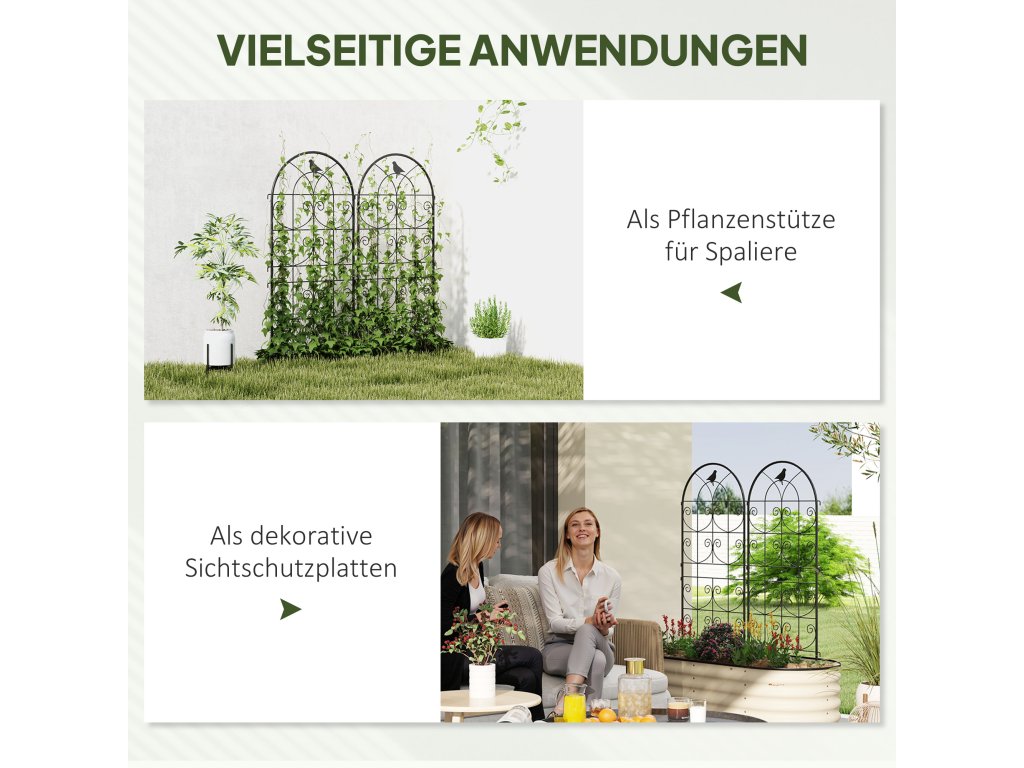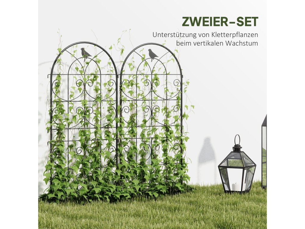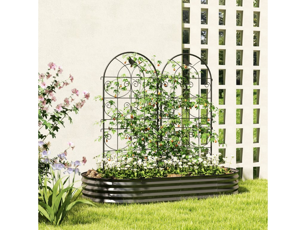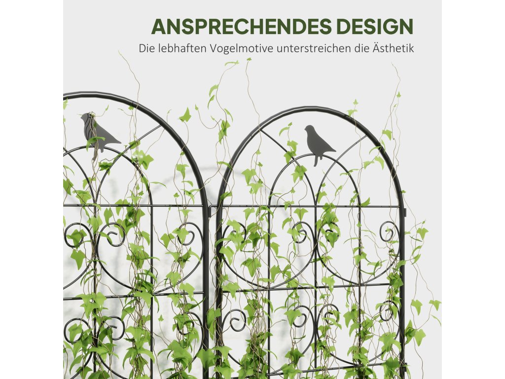 Proměňte svou zahradu v okouzlující oázu s mřížkou na růže Outsunny. Dvě mříže na růže zdobené jemnými ptačími motivy poskytují dostatek prostoru pro popínavé rostliny a slouží jako dekorativní zástěna soukromí. Mříže na růže jsou vyrobeny z kovu s práškovým nástřikem odolného proti povětrnostním vlivům a zaručují dlouhodobou stabilitu a snadnou instalaci do země. Tyto zahradní podpěry jsou ideální pro zahrádkáře, kteří chtějí spojit eleganci a funkčnost.